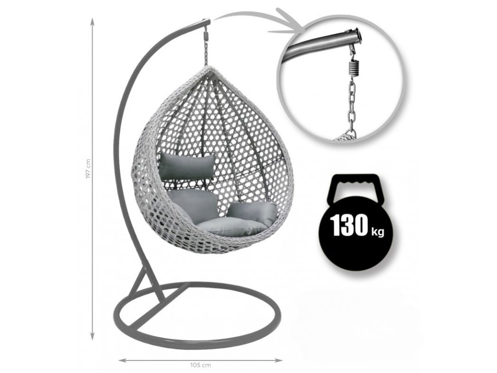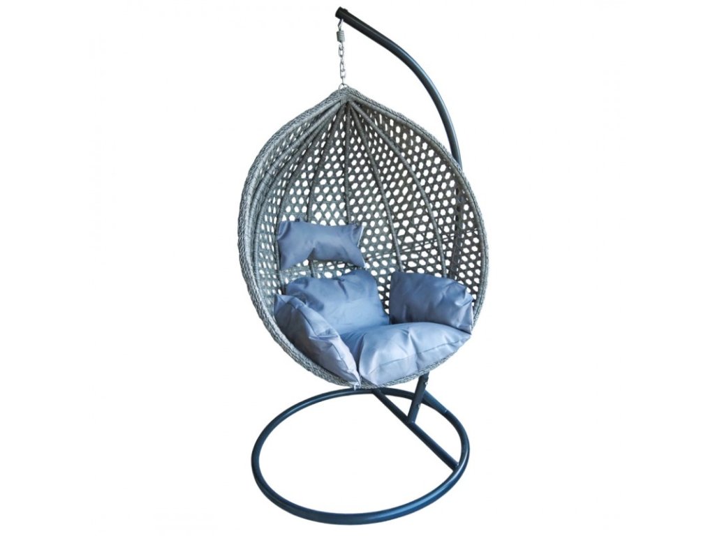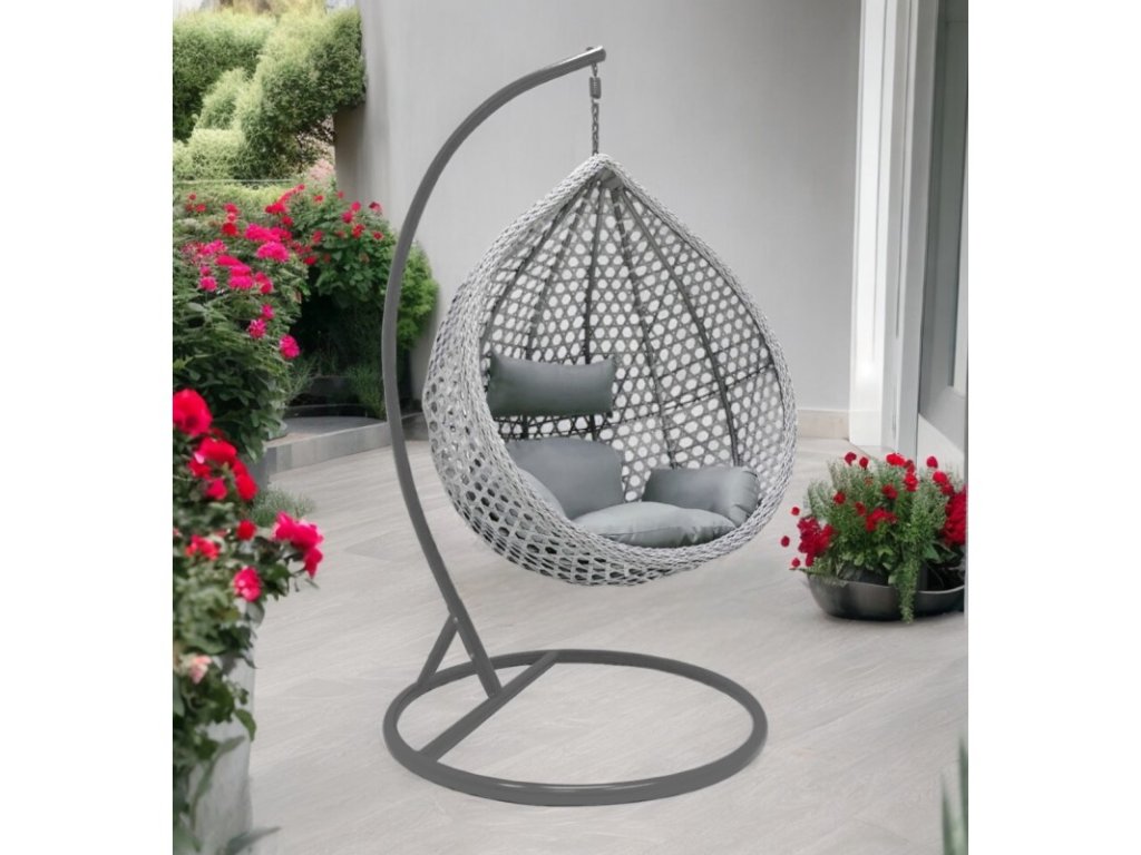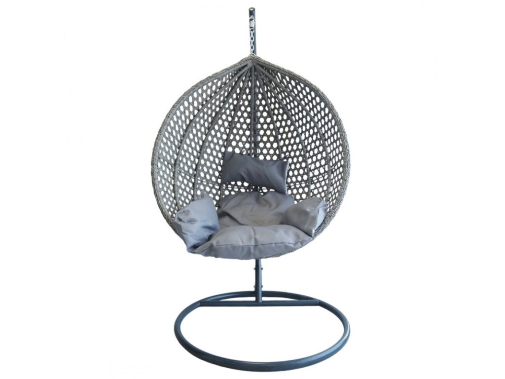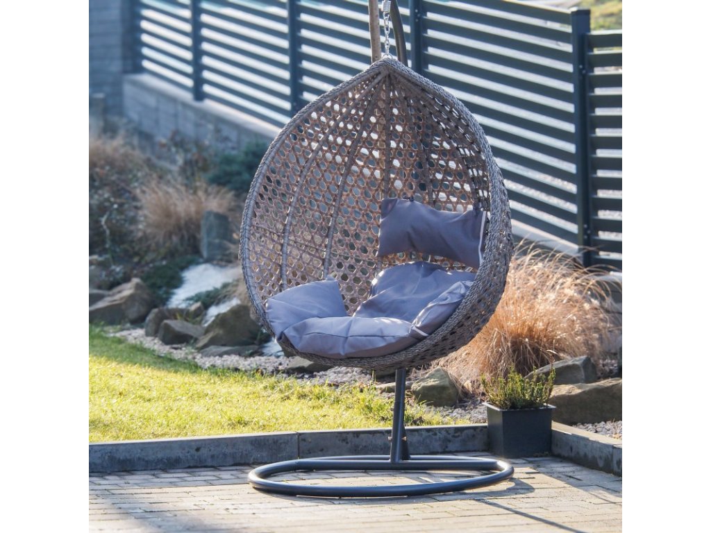 AKCE Šedé závěsné křeslo TROPIKAL se stojanem a šedým polštářem II. jakost