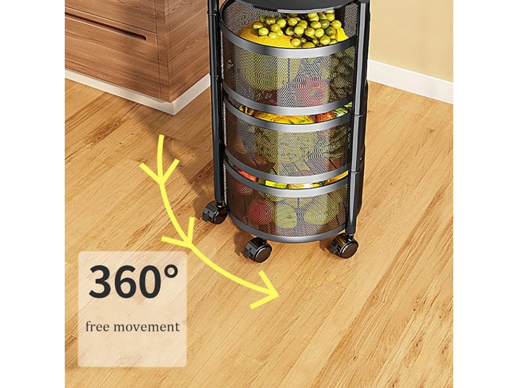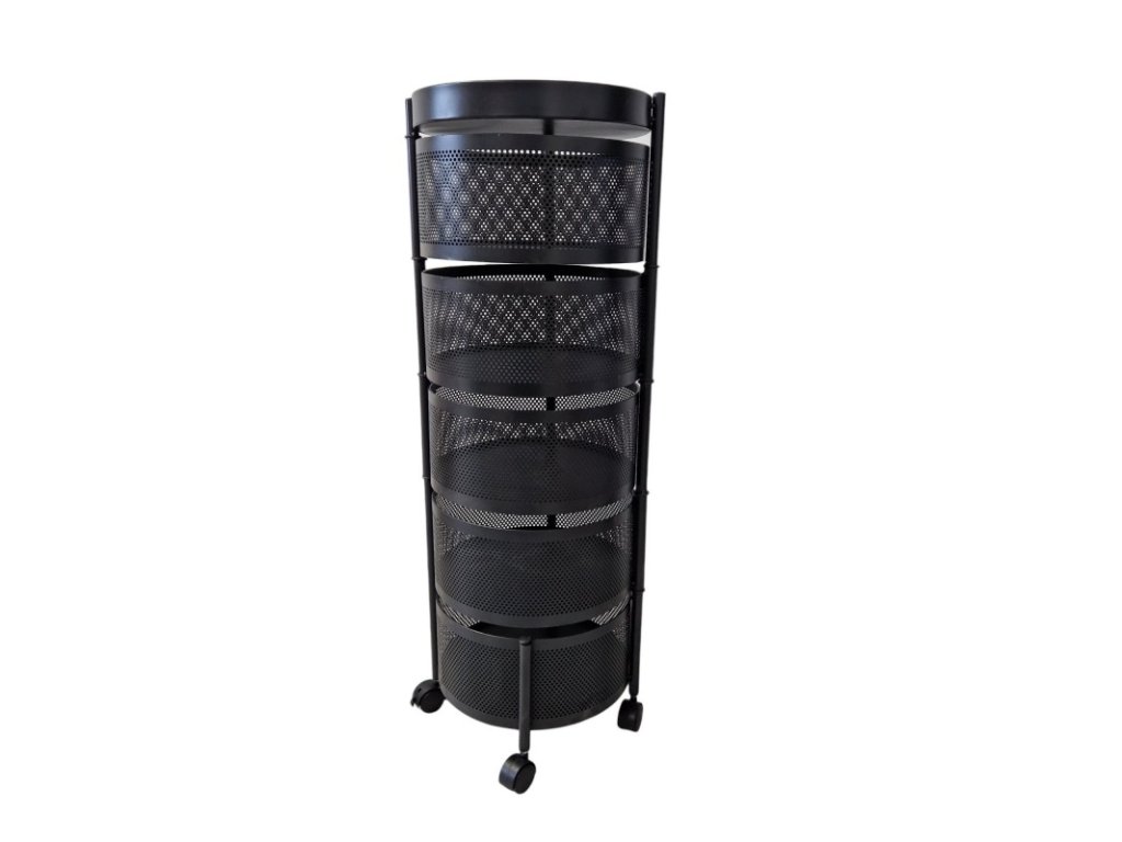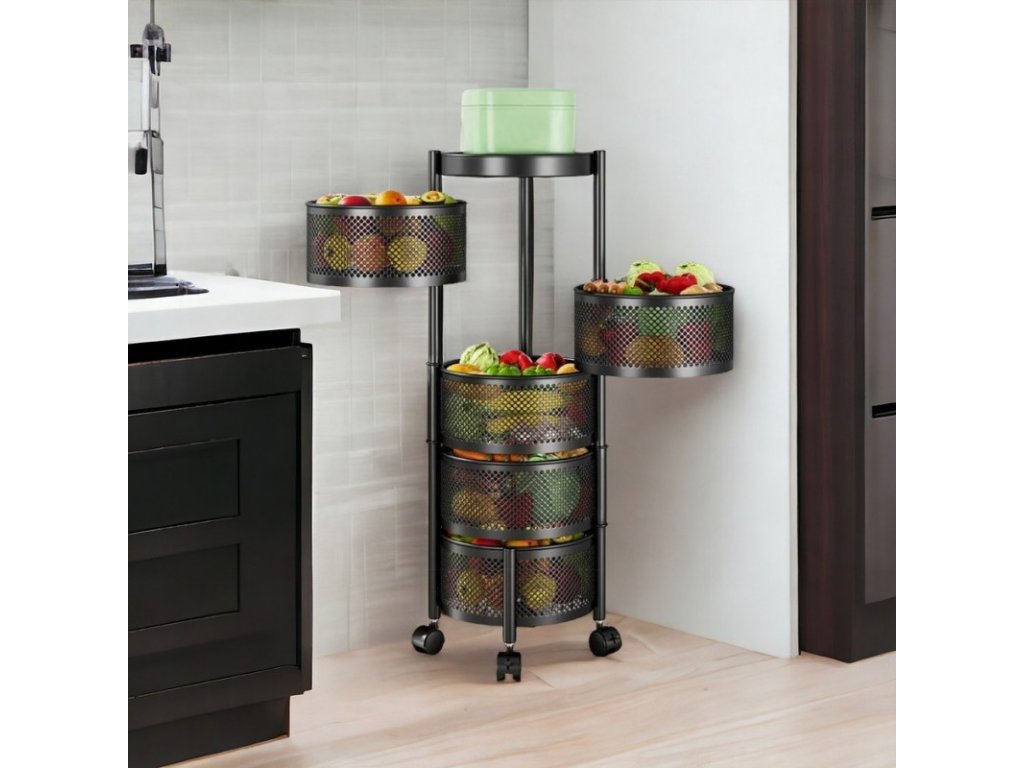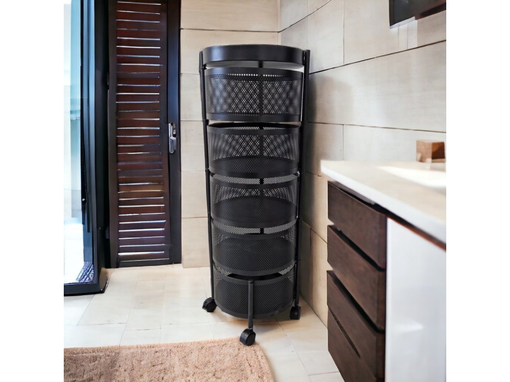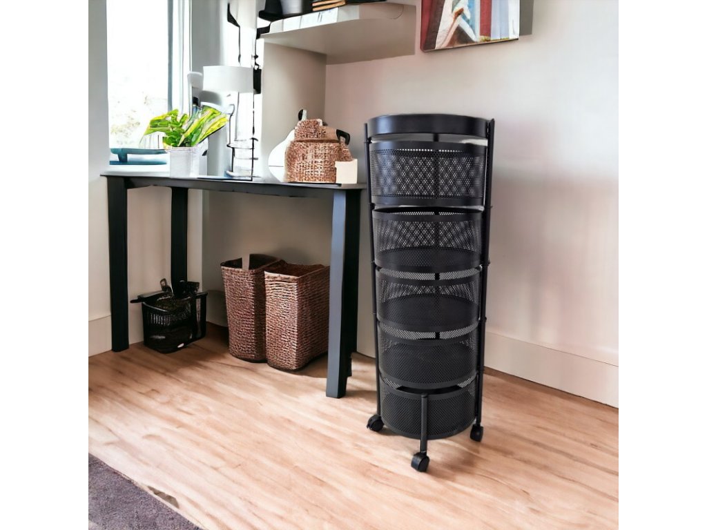 AKCE Otočný regál na kolečkách ROUND SZ33 s 5 košíky, černý II. jakost