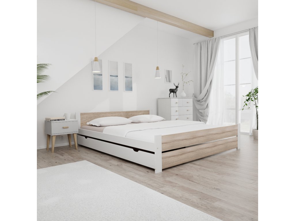 AKCE Postel IKAROS DOUBLE 180 x 200 cm, bílá/dub sonoma II.jakost