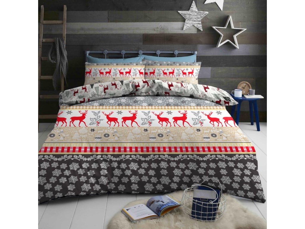 Pravá vánoční nálada i ve vašem pelíšku. Hravé vánoční motivy povlečení vás zahřejí na duši a ochrání před zimními chmury. Klasické a velice oblíbené motivy jelenů, sobů nebo vánočních ozdob můžete vybírat v širokém spektru barev. Vneste do ložnice nebo pokojíčku vznešenou atmosféru a ducha Vánoc, plného klidu a nečinnosti.