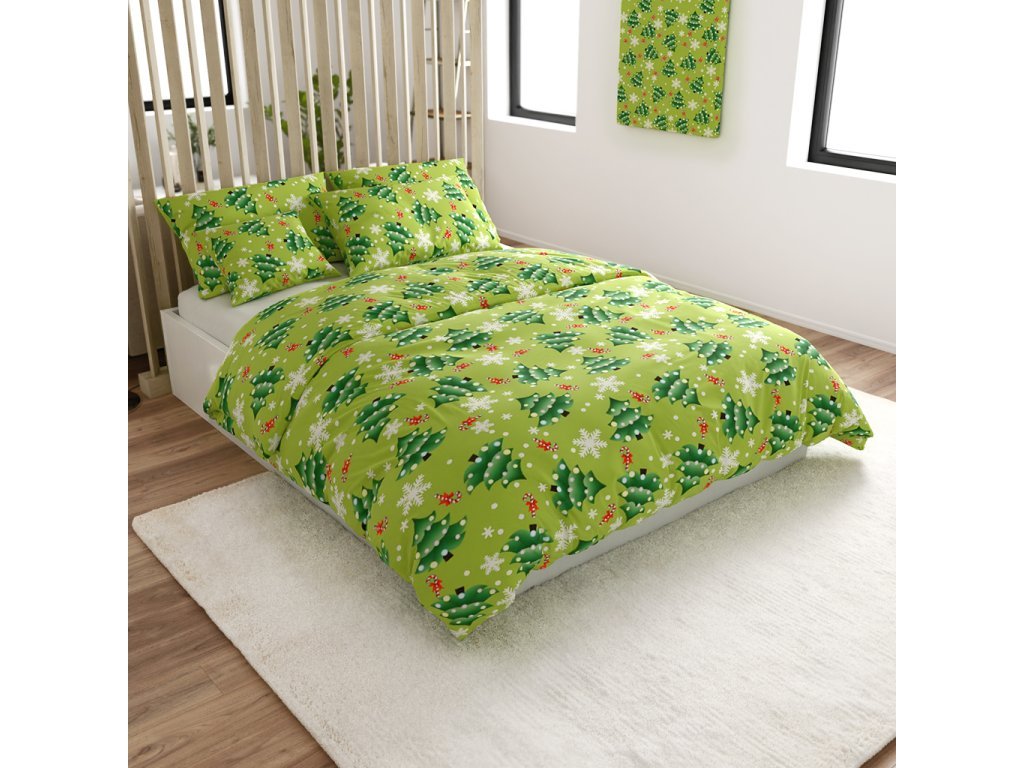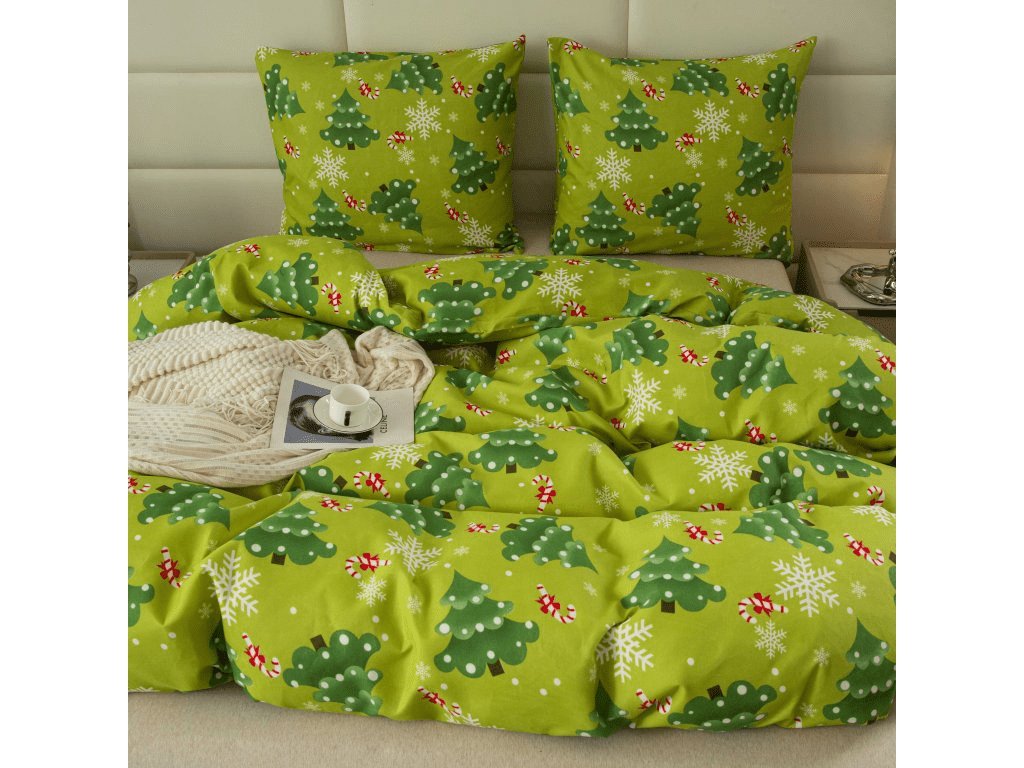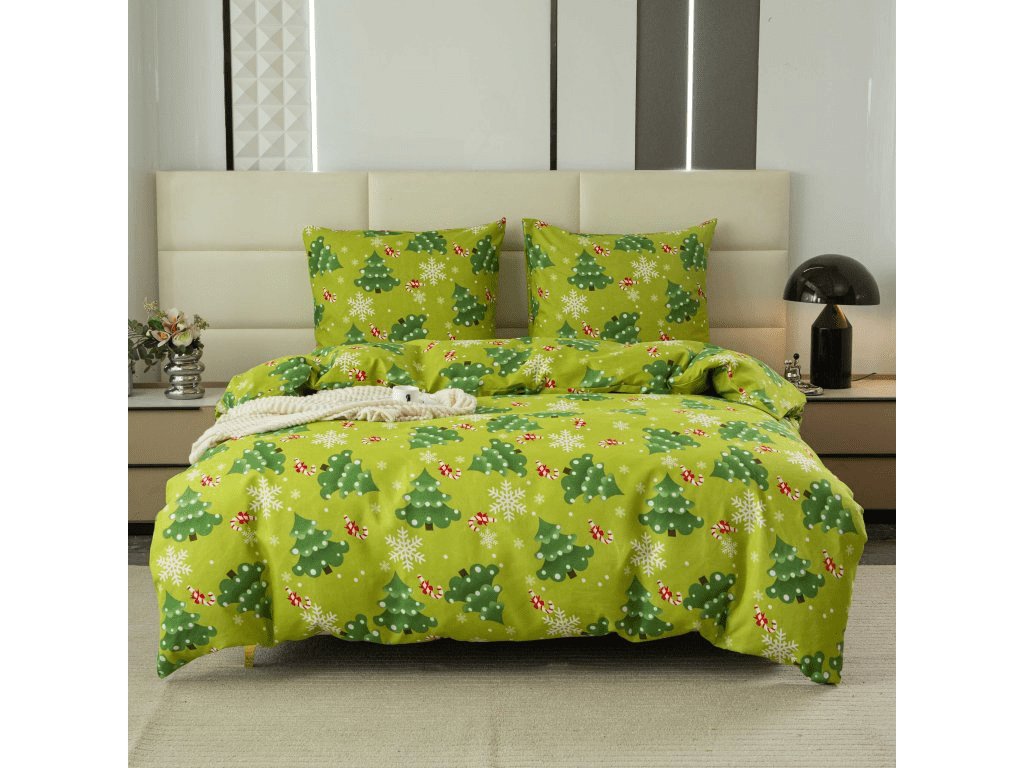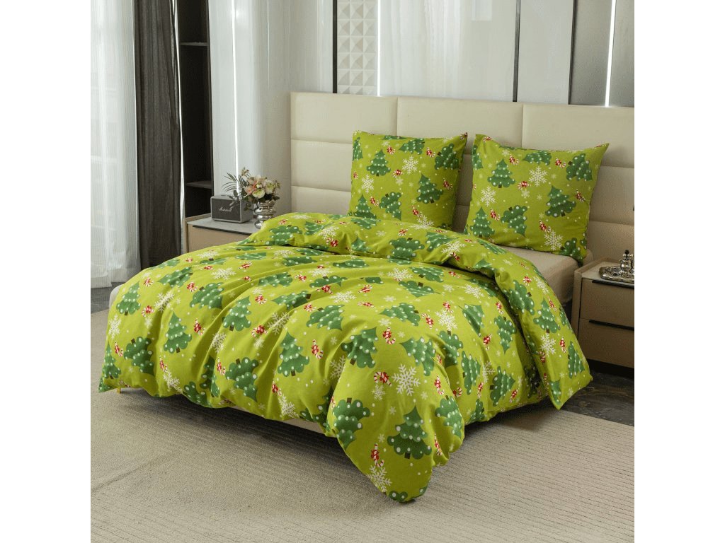 Flanelové povlečení z mikrovlákna CHRISTMAS TREE zelené