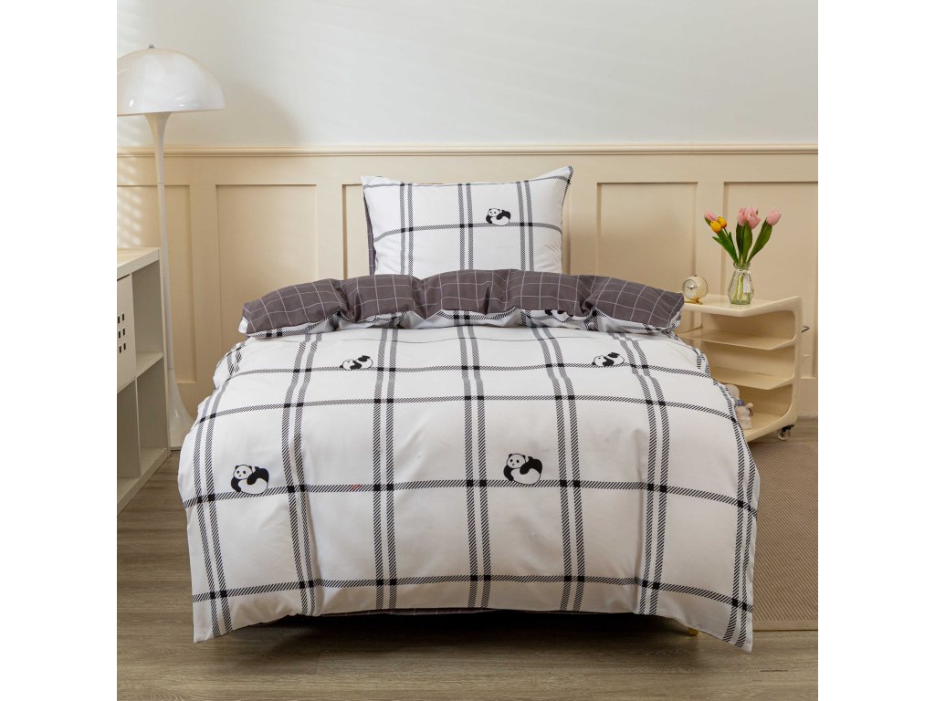 Flanelové povlečení z mikrovlákna CUTE PANDA bílé