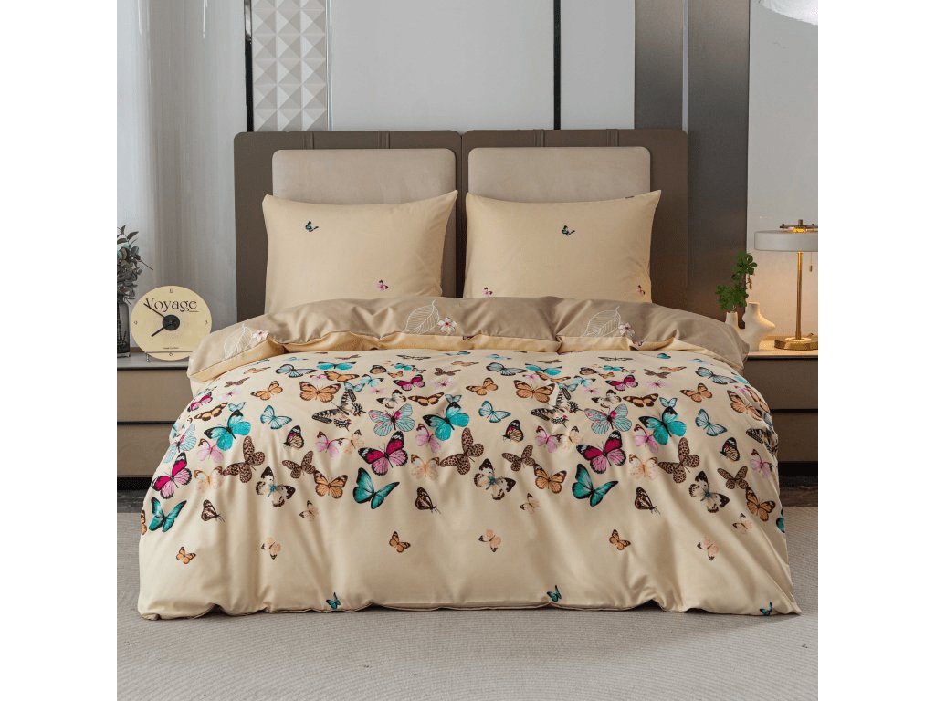 Flanelové povlečení z mikrovlákna VIVA BUTTERFLY krémové