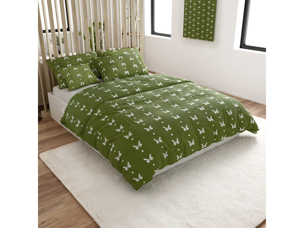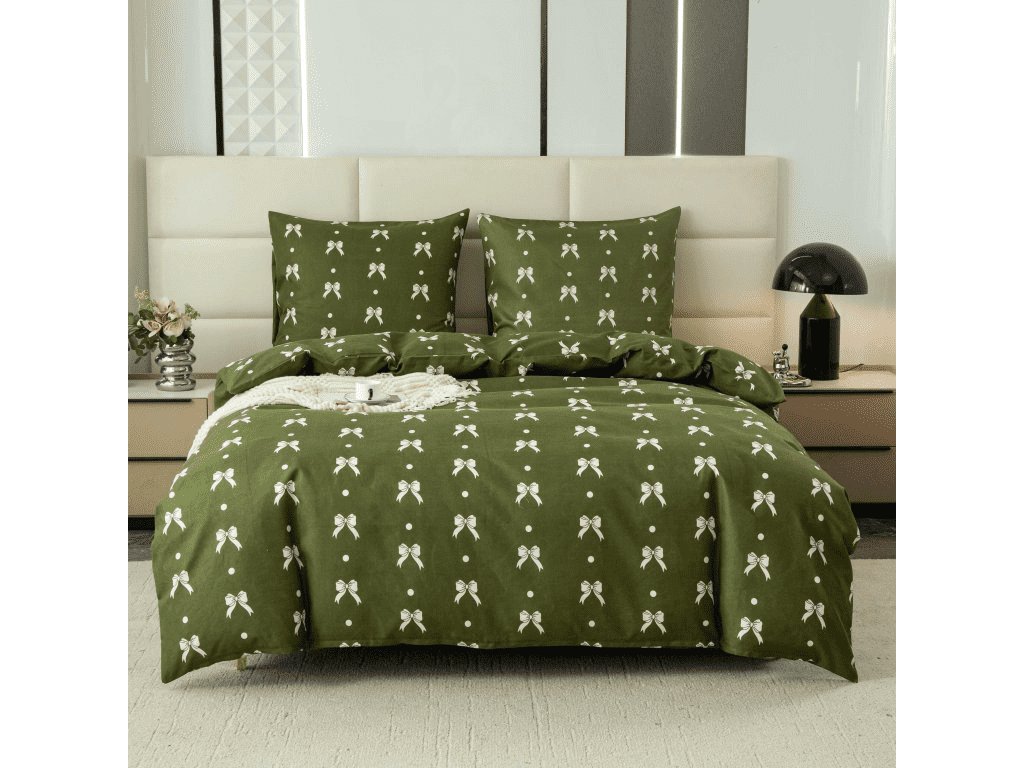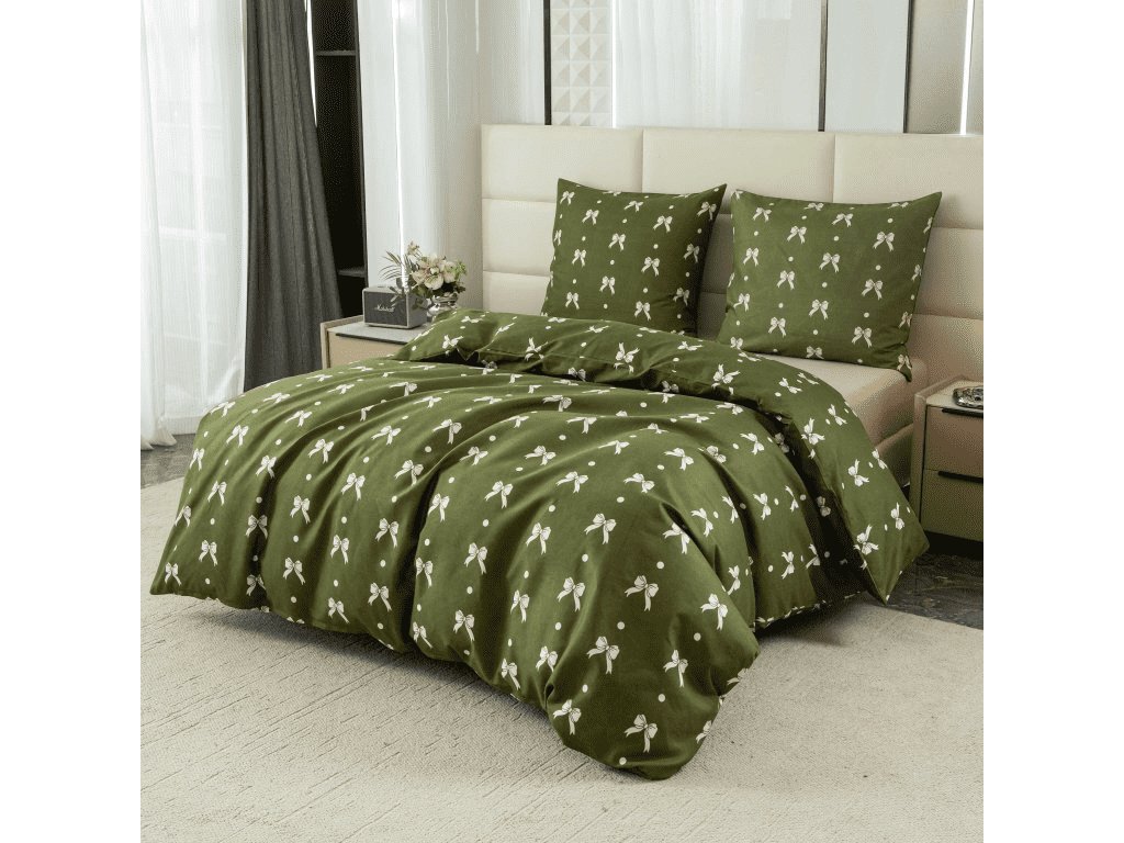 Flanelové povlečení z mikrovlákna WHITE BOW zelené