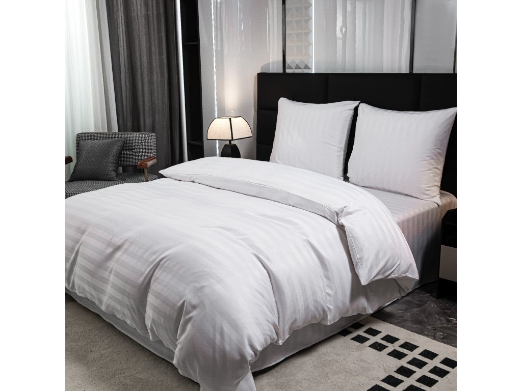 Hotelové povlečení z mikrovlákna JASMINE bílé - proužek 2 cm