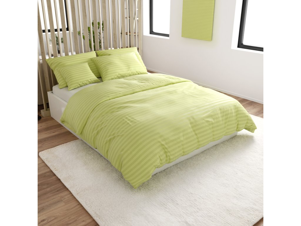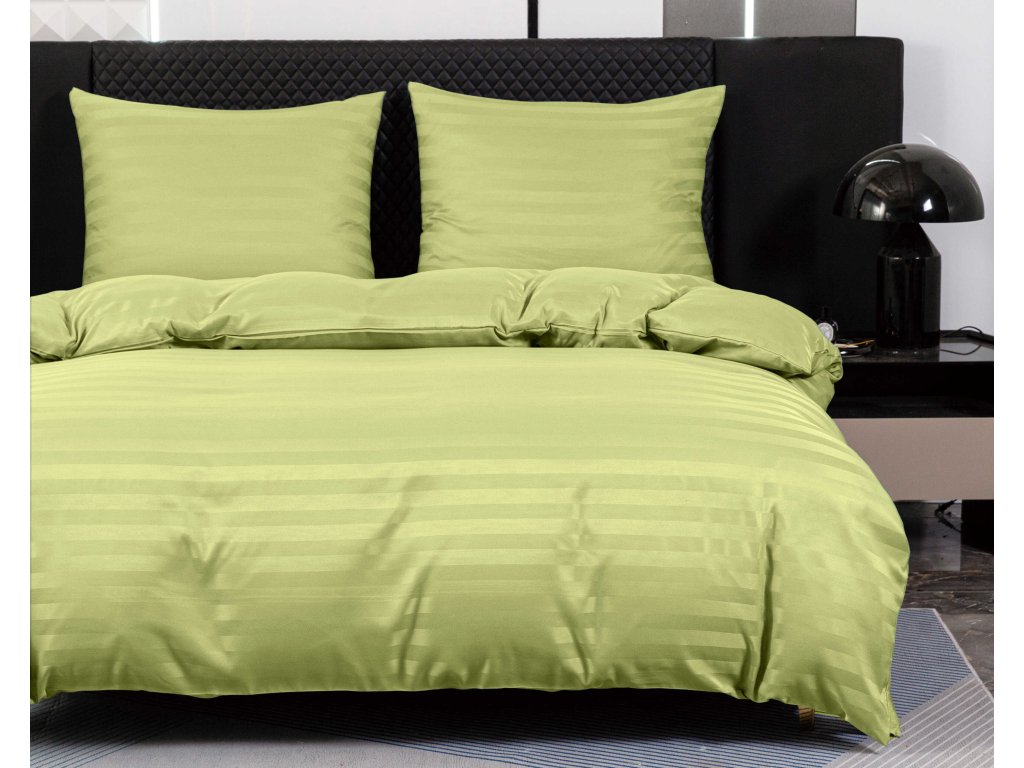 Hotelové povlečení z mikrovlákna JASMINE pistáciové - proužek 2 cm