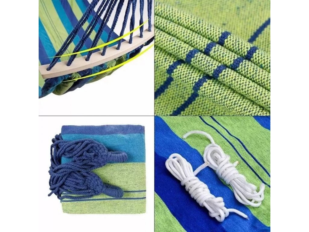 | Materiál houpací sítě: | Bavlna, Polyester, Dřevo |