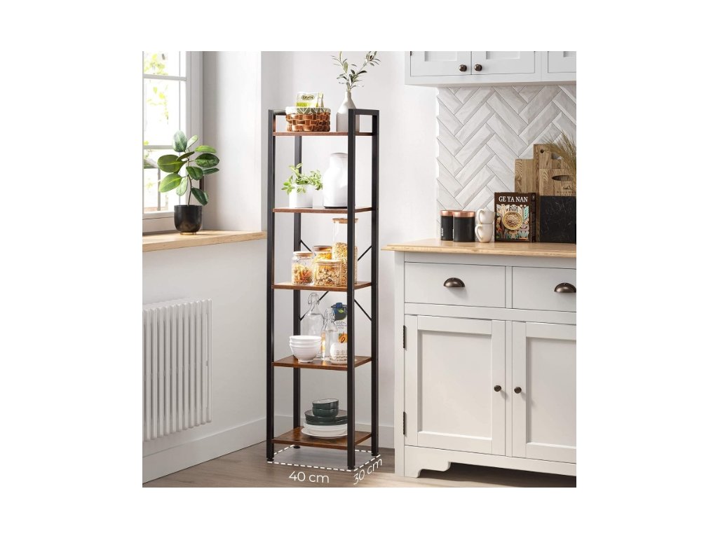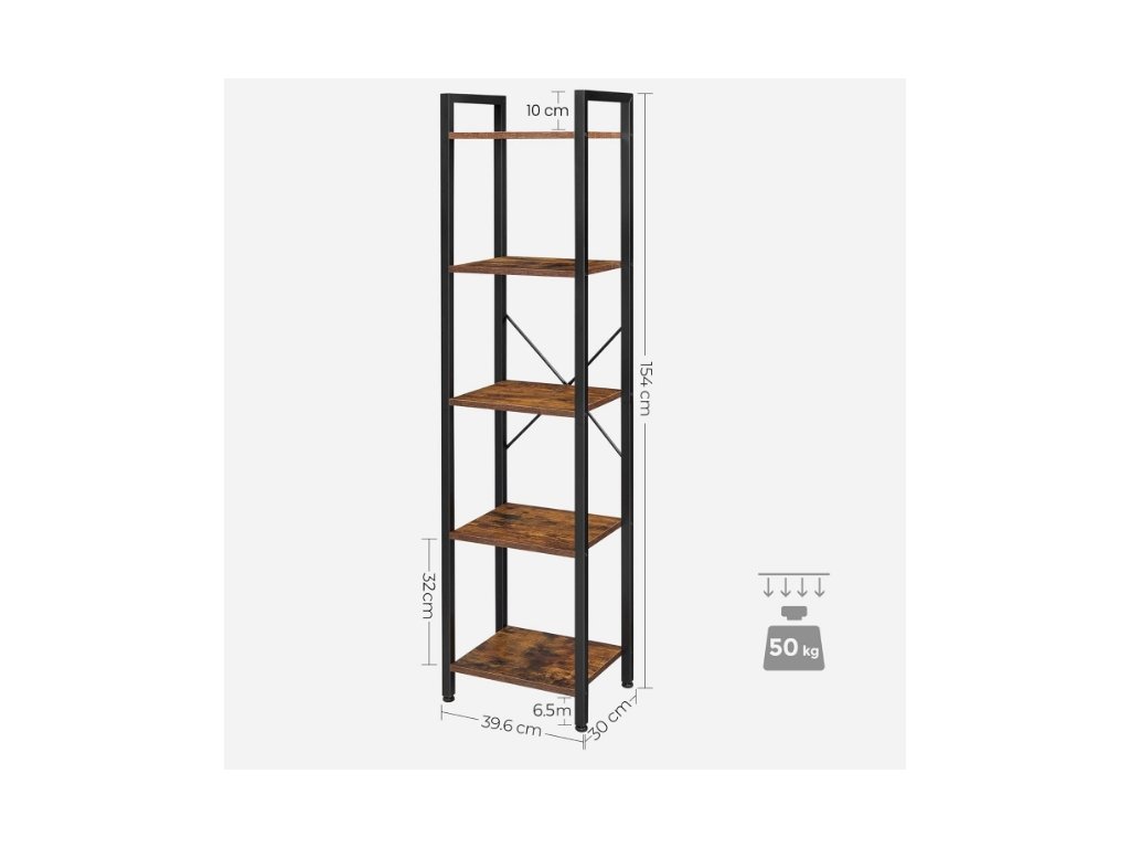 Regál TAYLOR hnědý s černou konstrukcí, 5 polic