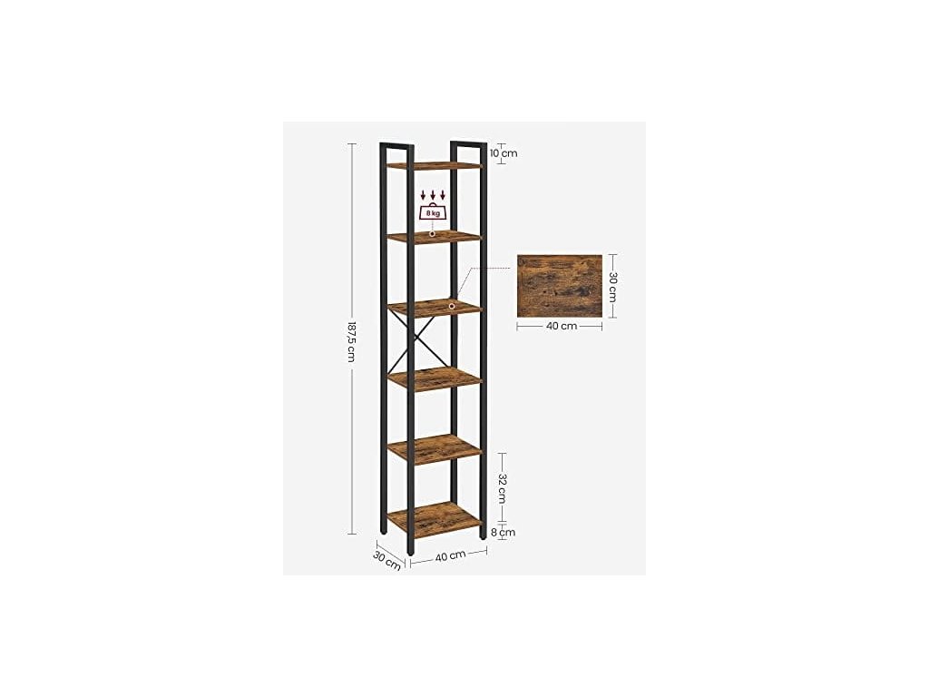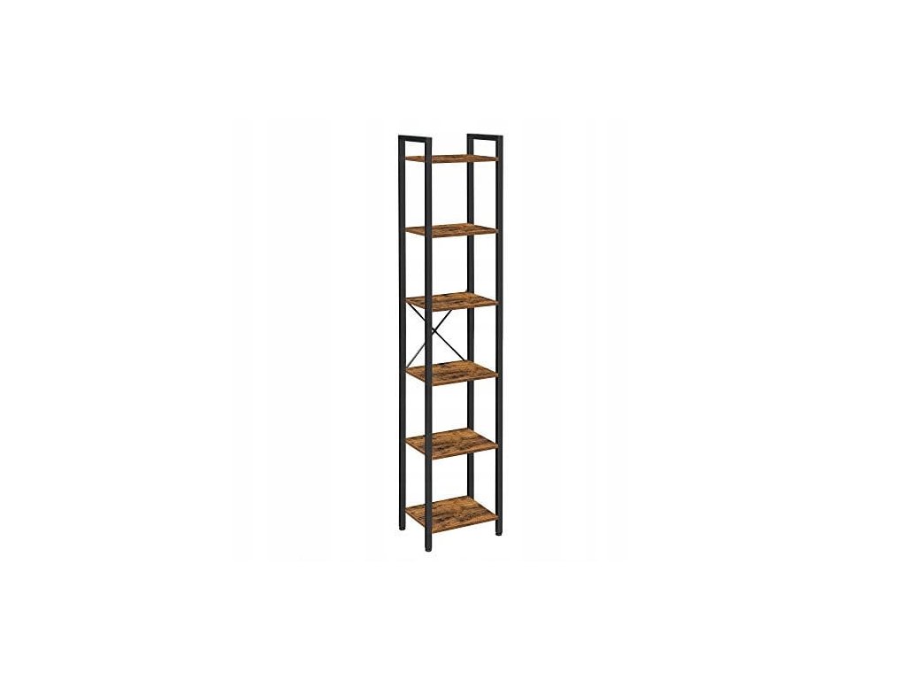 Regál TAYLOR hnědý s černou konstrukcí, 6 polic