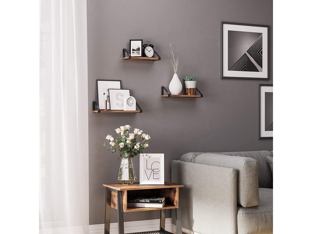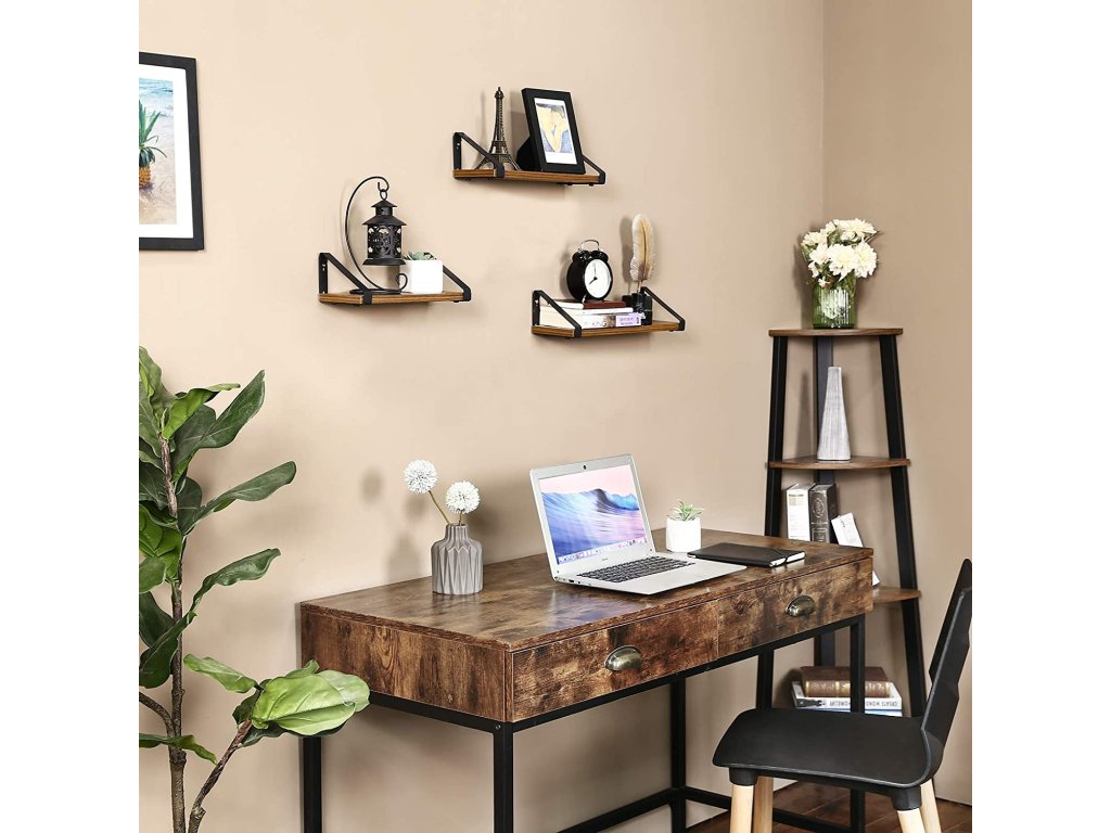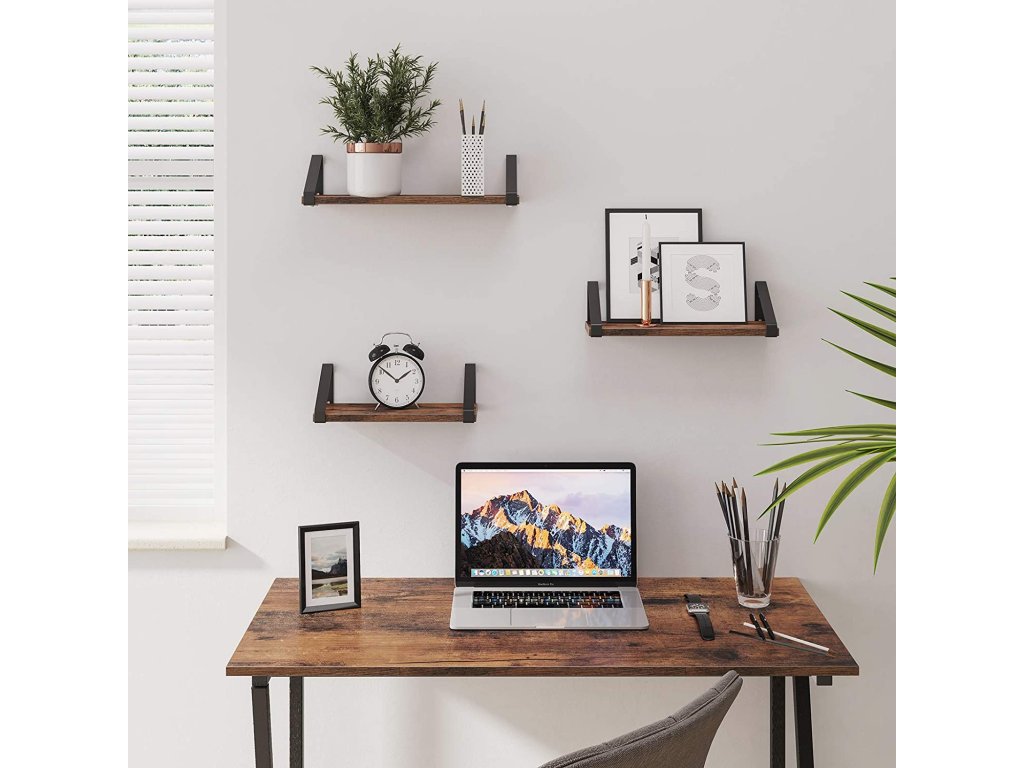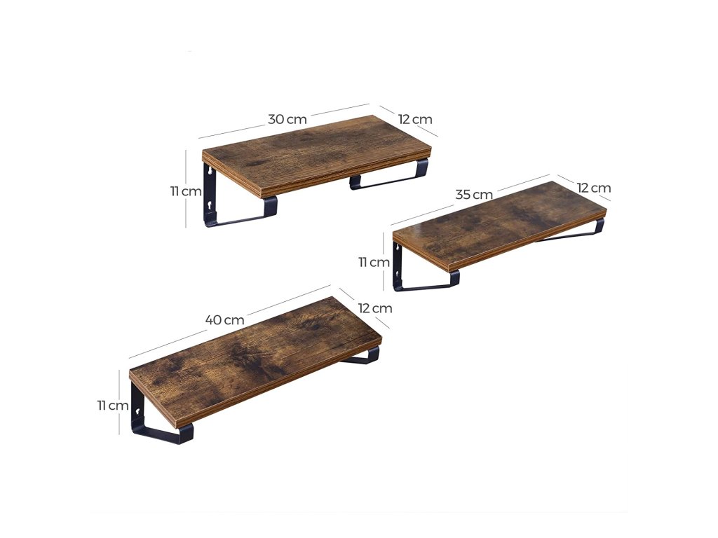 Sada 3 ks hnědých nástěnných polic TAYLOR