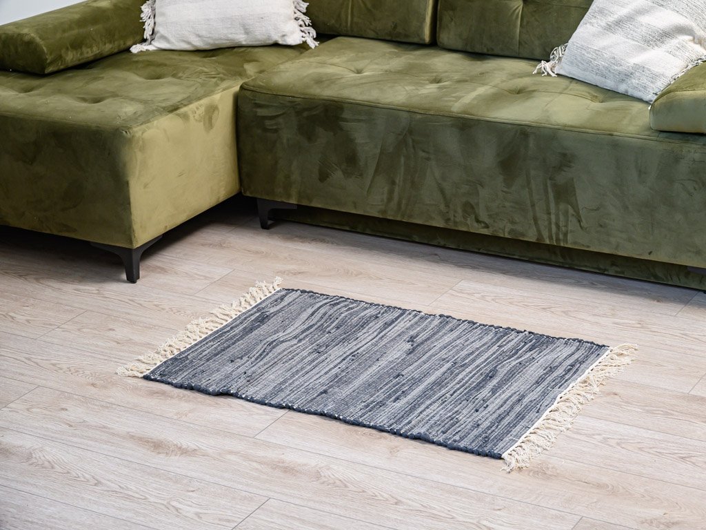 Tmavé žíhané provedení s třásněmi na kratších koncích se stane nepřehlédnutelným akcentem prostoru. Koberec vytvoří jedinečnou bariéru mezi studenou podlahou a chodidly. Kusový koberec RENSKE je příjemný na došlap, nechte si své nohy hýčkat.
