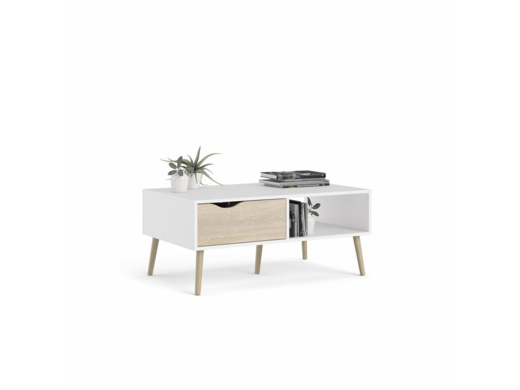 Bílý konferenční stolek OSLO 75384 s deskou v dekoru dub