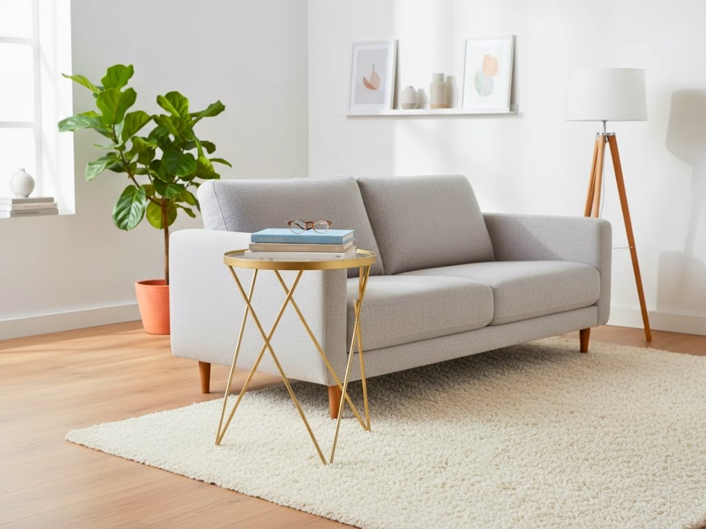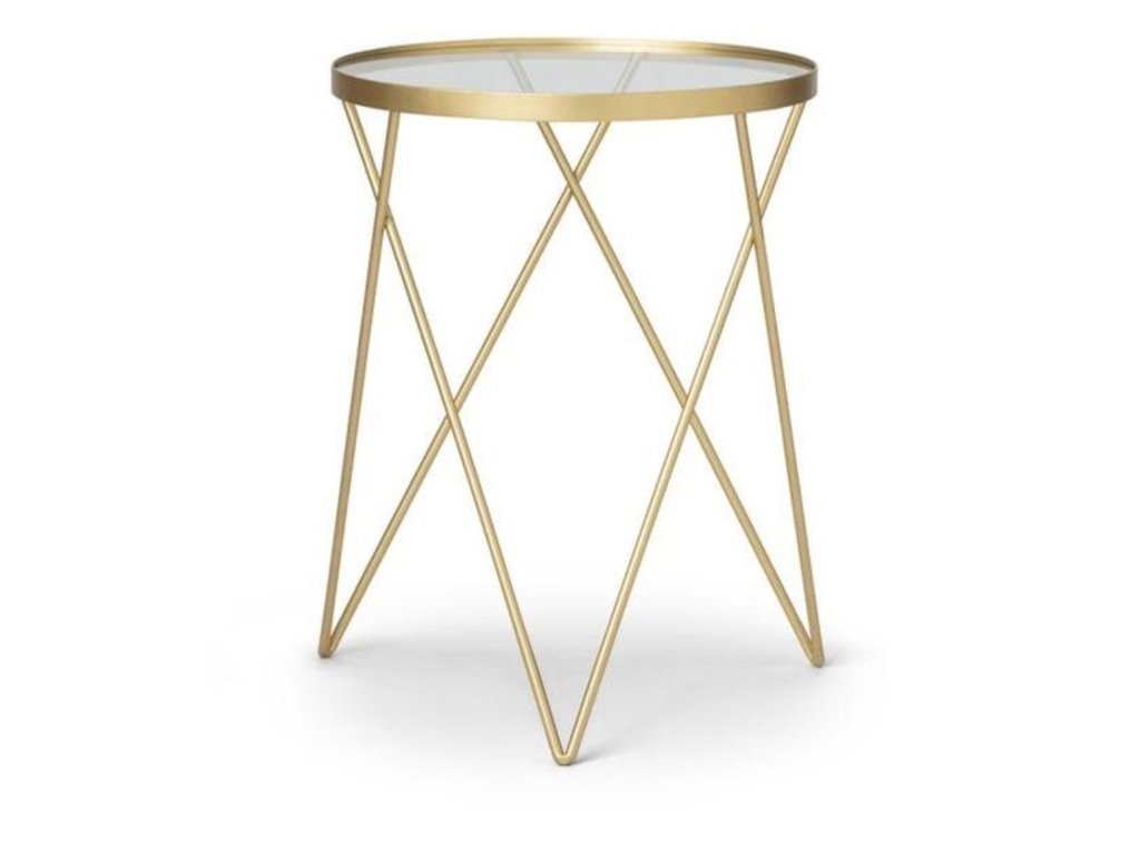 Příruční stolek EMILY v elegantním zlatém provedení a se skleněnou deskou je stylovým i praktickým doplňkem do každého interiéru. Díky svému lehkému, ale stabilnímu kovovému rámu působí vzdušně, přesto nabízí dostatek prostoru pro odložení knihy, kávy nebo dekorací. S průměrem 35,5 cm se skvěle hodí vedle pohovky, křesla nebo postele. Jeho nadčasový design vynikne ve stylu glamour, moderním i minimalistickém, a krásně se kombinuje s doplňky v bílé, černé, zelené nebo pastelových odstínech.