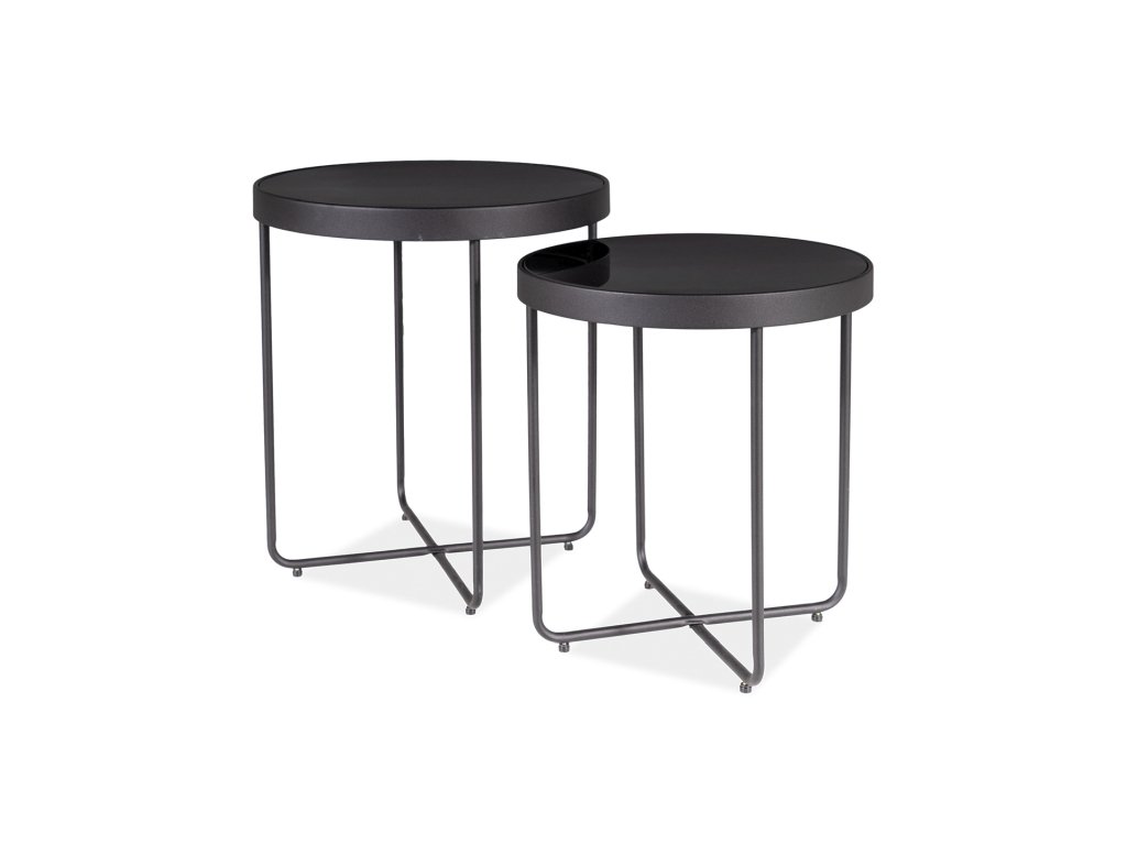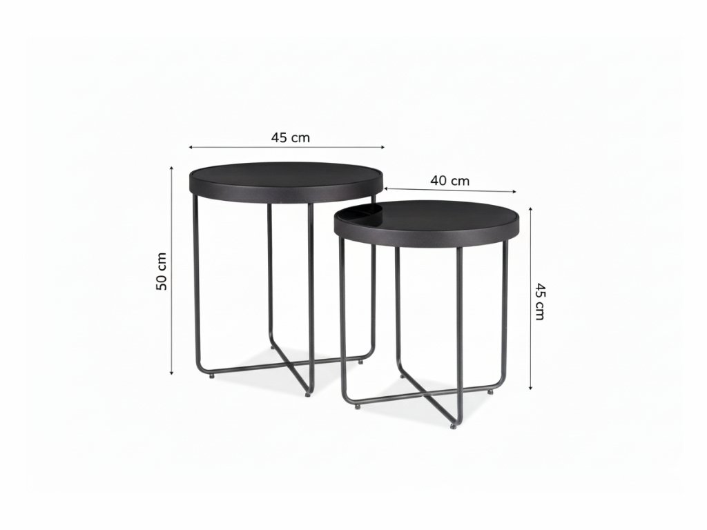 Odkládací stolky ATENA GLASS sada 2 ks Ø 40/45 cm, černé