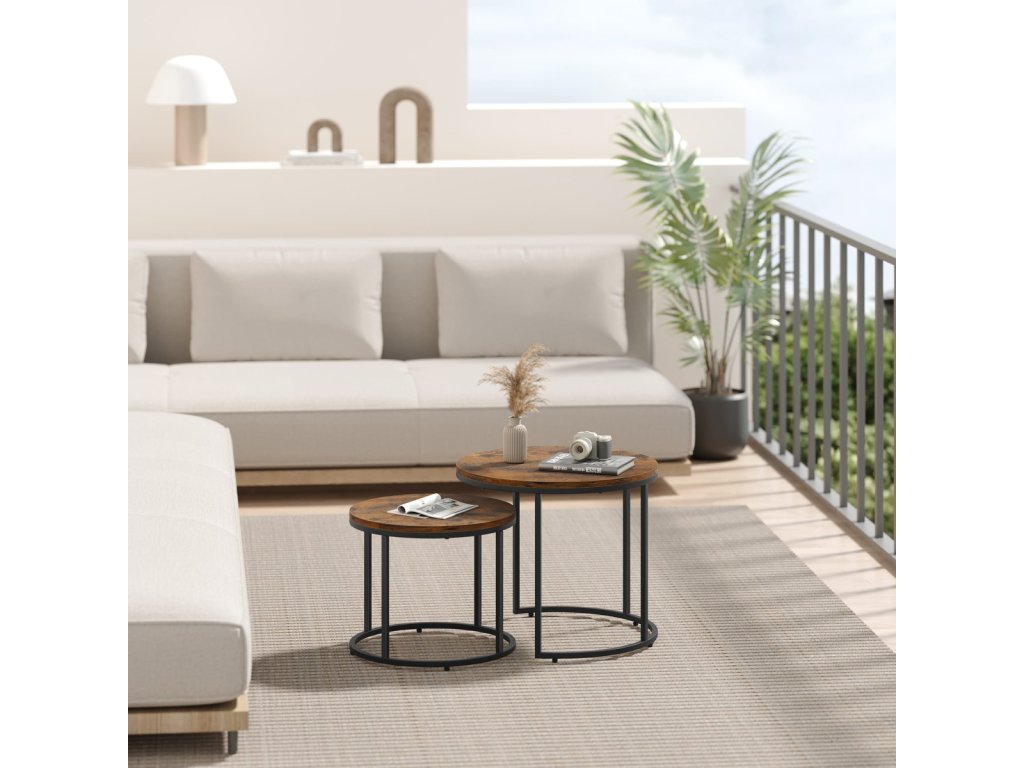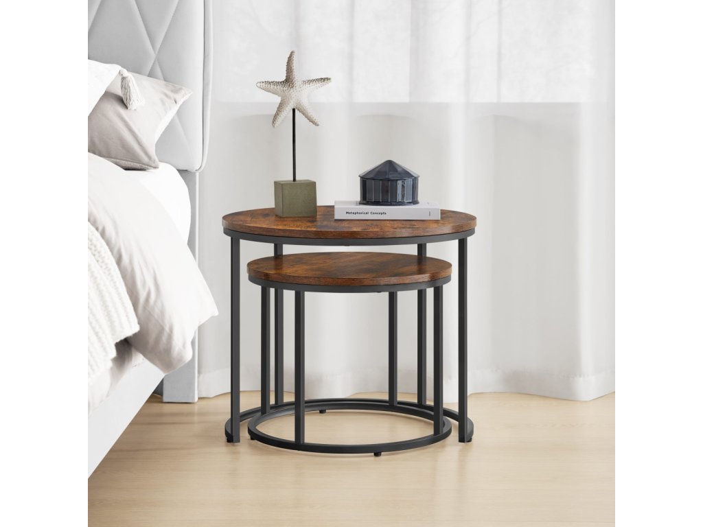 Tyto stolky se perfektně hodí jako noční stolky v ložnici, kde poskytují dostatek prostoru pro lampičku, knihy či budík. V obývacím pokoji poslouží jako stylové konferenční stolky pro odložení kávy, dekorací nebo časopisů. Díky svému modernímu designu a kompaktním rozměrům se snadno přizpůsobí i menším prostorům, jako jsou balkony nebo terasy, kde vytvoří útulné místo pro relaxaci. Kombinace dřeva a kovu dodá vašemu interiéru elegantní a současný vzhled.