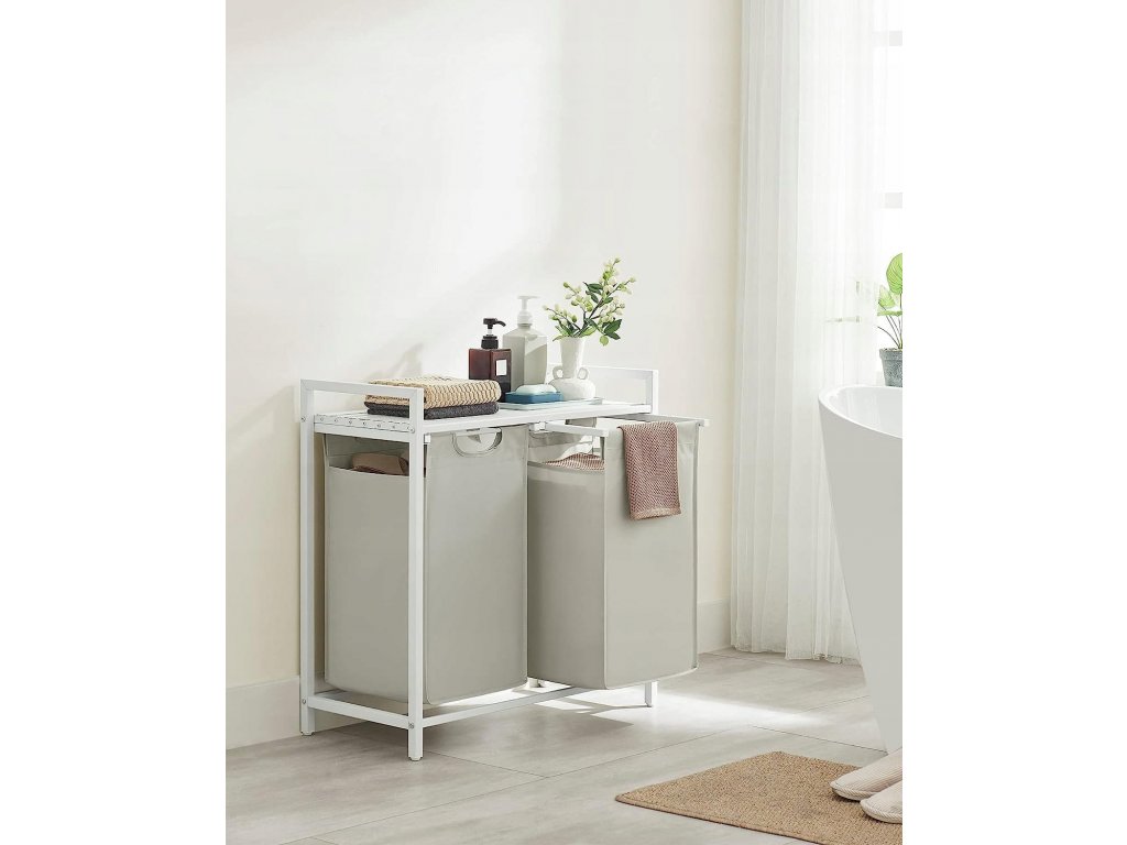 Béžový dvoukomorový koš na prádlo s policí SPECA