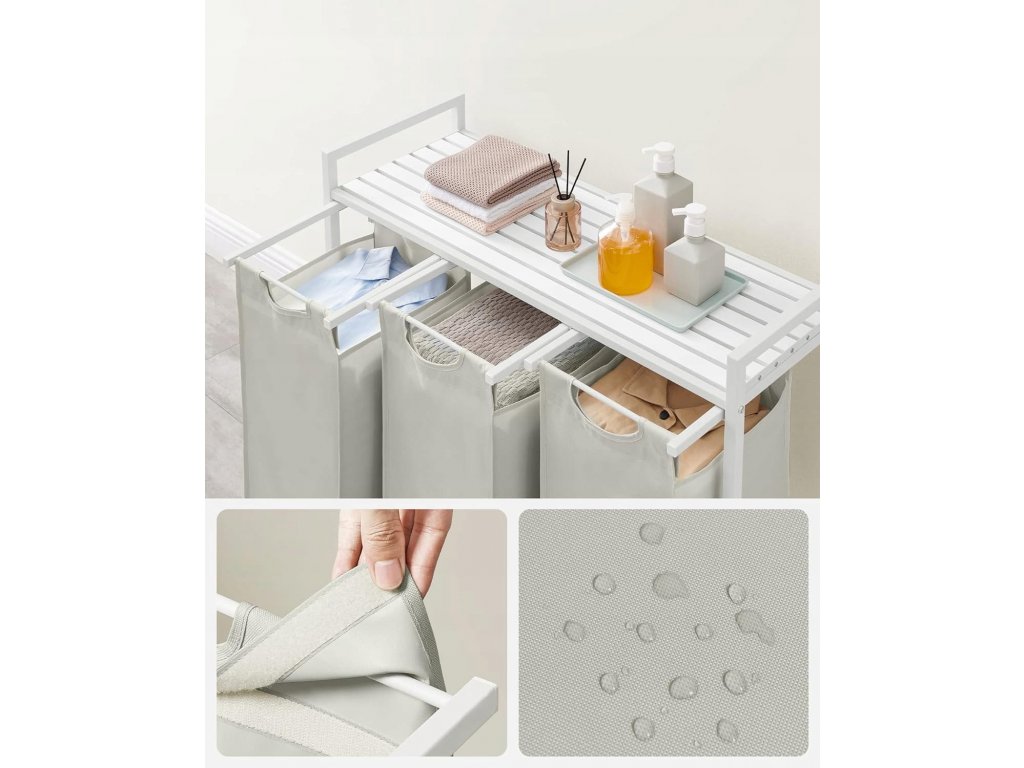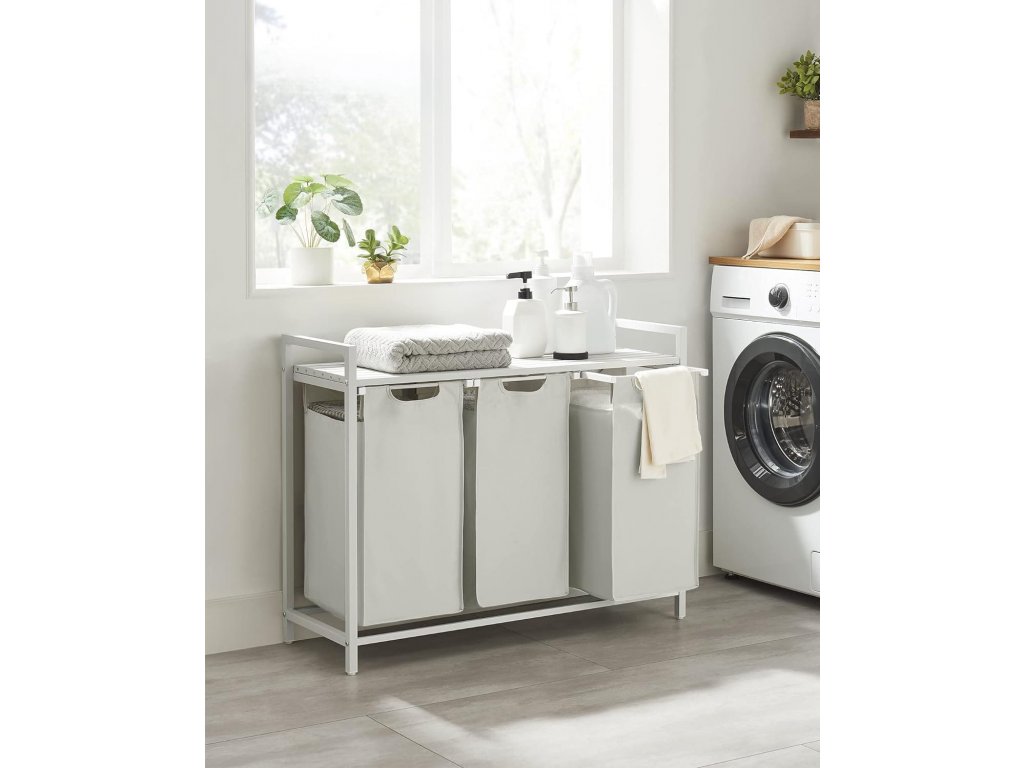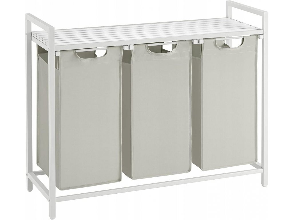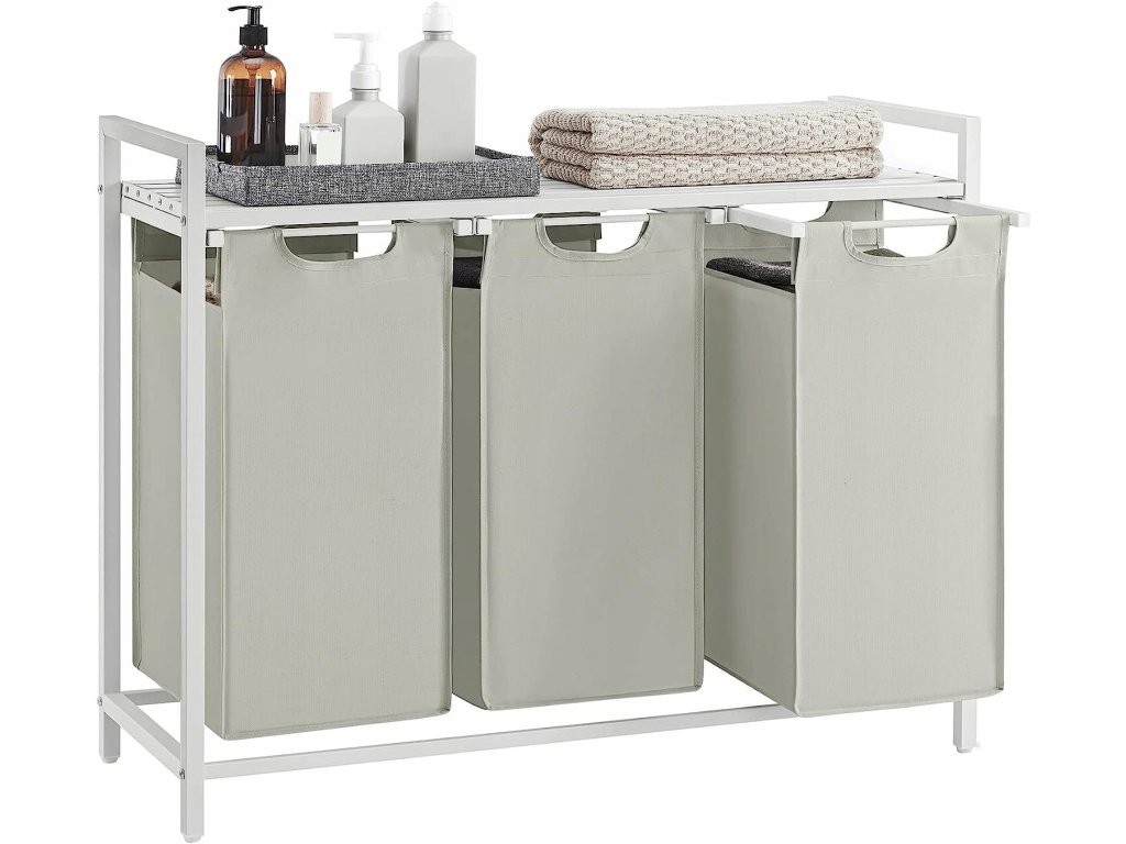 Béžový tříkomorový koš na prádlo s policí SPECA