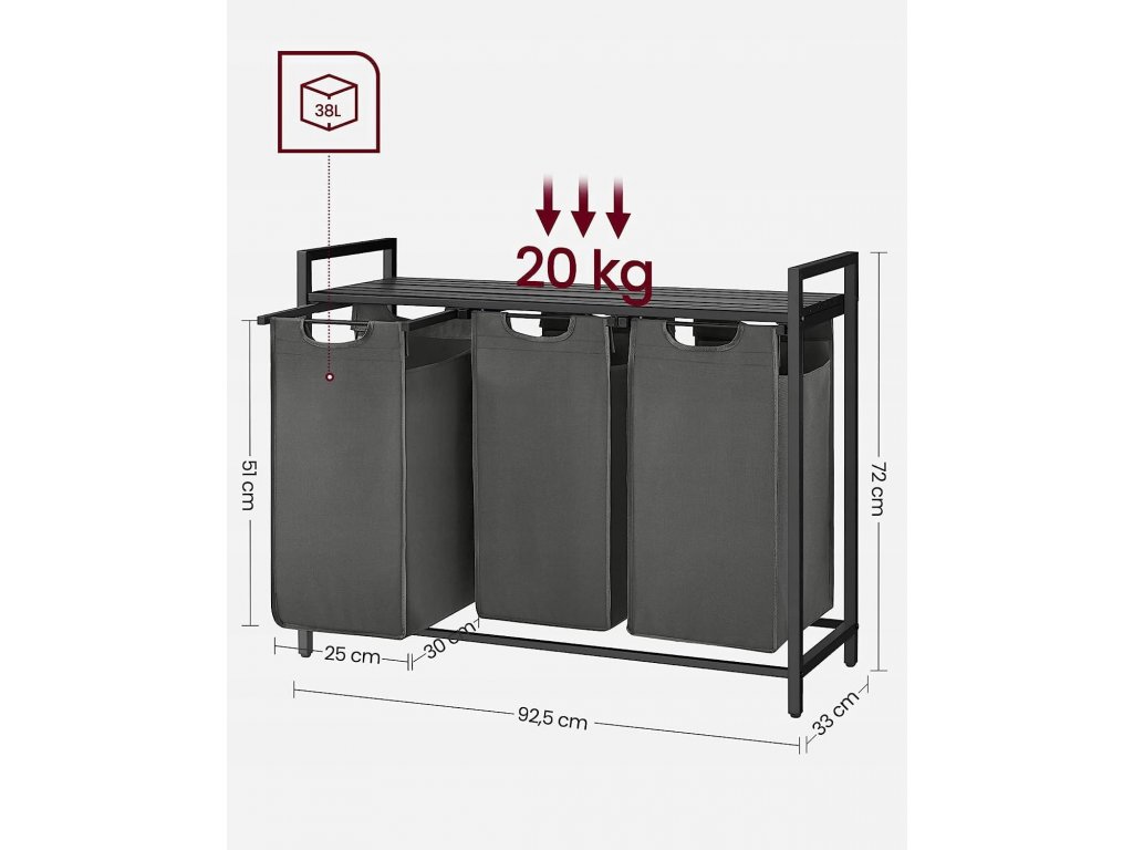Šedý tříkomorový koš na prádlo s policí SPECA