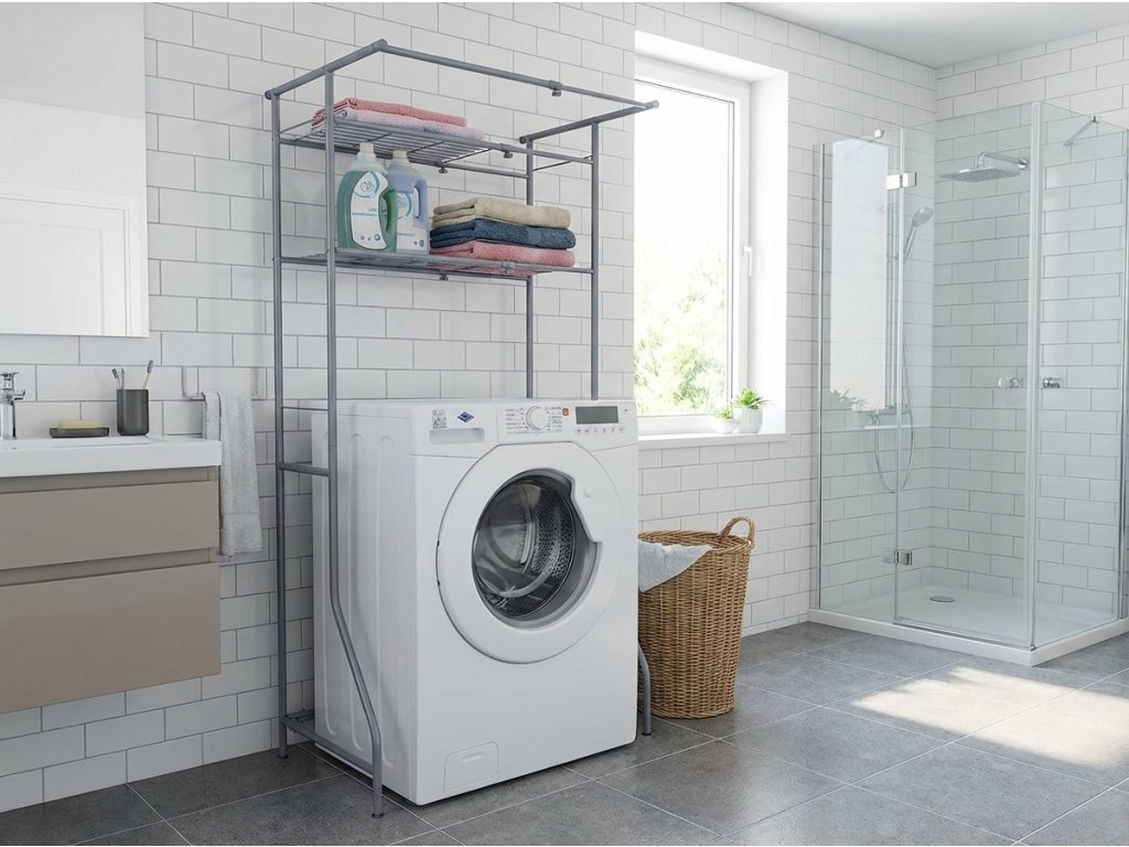 Tento regál nad pračku představuje ideální řešení pro úsporu místa v koupelně nebo prádelně. Umožňuje efektivně využít prostor nad spotřebičem a udržet vše potřebné po ruce – od pracích prostředků po ručníky. Díky jednoduchému a odolnému provedení se skvěle hodí do moderních i klasických interiérů. Regál pomáhá udržet přehled a řád, což ocení každý, kdo má rád funkční a praktické uspořádání domácnosti.