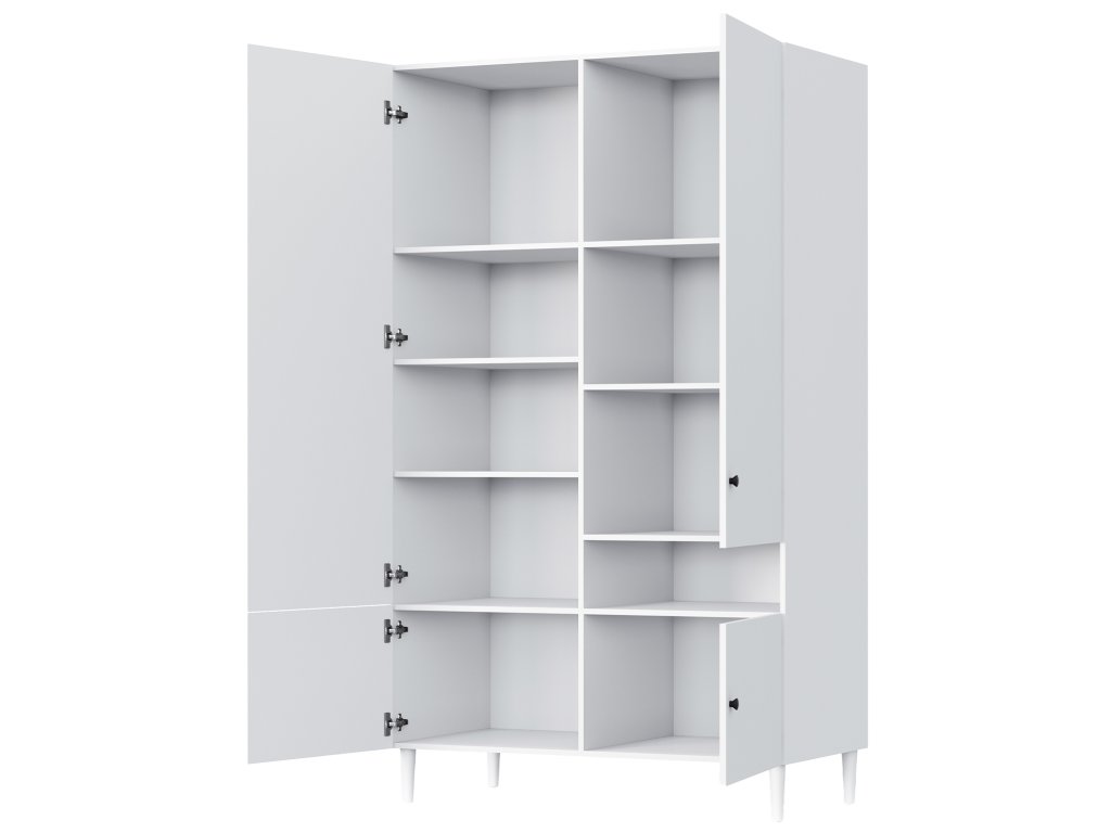 - Dvě vysoké skříně, dvě malé skříňky ve spodní části a otevřená police