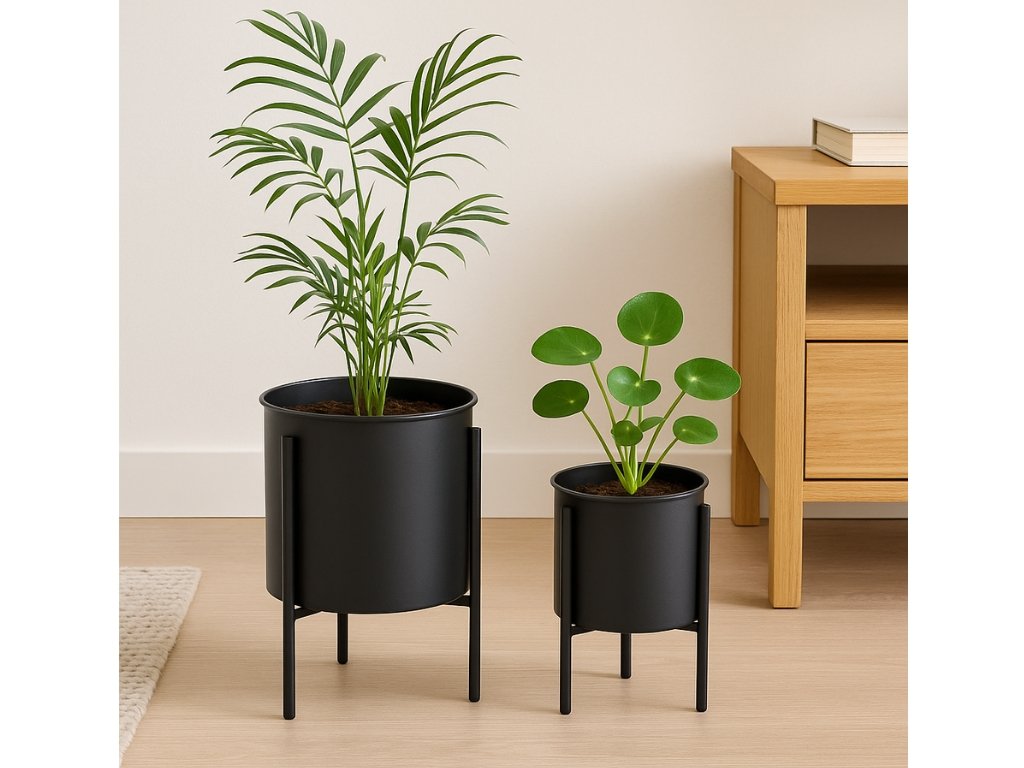 Kovový květináč se stojanem MATHY 18x25 cm, černý
