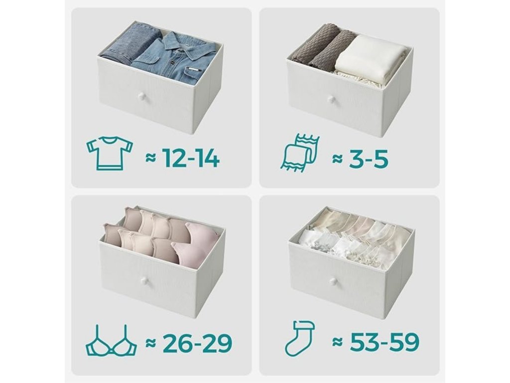 - 6 vyjímatelných textilních zásuvek s látkovým potahem