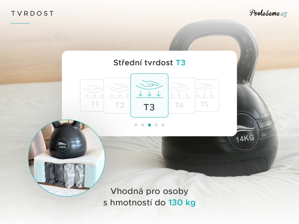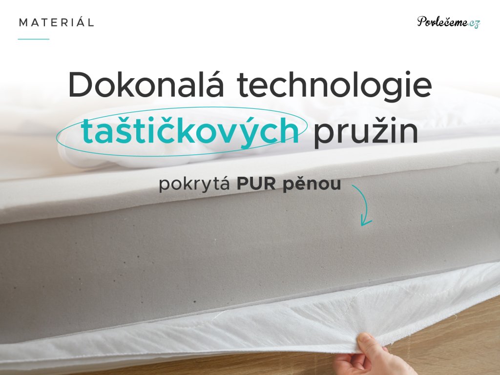 - Delší životnost oproti pěnovým matracím díky technologii pružin v taštičkách