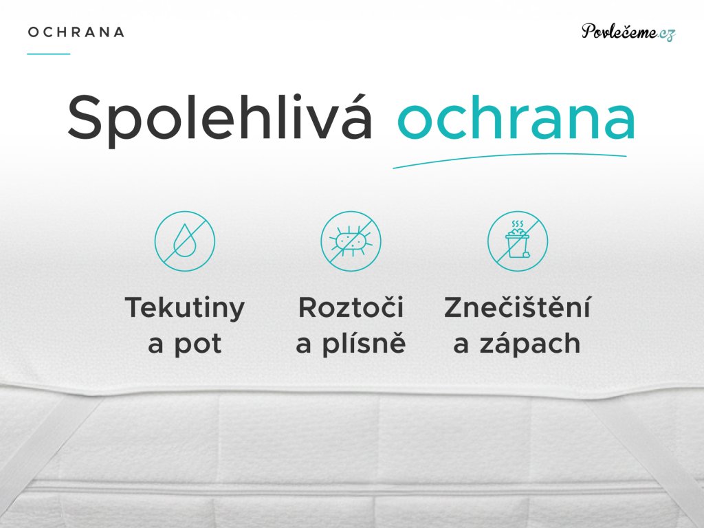 Ochrana matrace je důležitější, než si myslíte. Každý člověk, ať dítě nebo dospělý se přirozeně potí. Během noci vypotíme až litr potu, který se vsákne do prostěradla a jádra matrace. Chránič matrace celkově zvýší hygienu lůžka. Navíc chrání před mechanickým poškozením, znečištěním, roztoči, potem i močí. Jedná se o skvělého pomocníka na dětské postýlky nebo první postele. Své místo má také u dospělých jako běžná ochrana matrace, u seniorů nebo dlouhodobě nemocných, kteří jsou upoutáni na lůžko. Voděodolný chránič vytvoří ochrannou a tekutinám nepropustnou vrstvu. Pocitu spánku na igelitu se bát nemusíte, horní vrstva chrániče je vyrobena z mikrovlákna, které je šetrné k pokožce a příjemné na dotek.