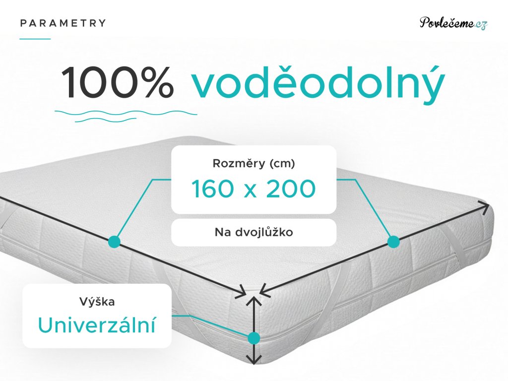 Ochrana matrace je důležitější, než si myslíte. Každý člověk, ať dítě nebo dospělý se přirozeně potí. Během noci vypotíme až litr potu, který se vsákne do prostěradla a jádra matrace. Chránič matrace celkově zvýší hygienu lůžka. Navíc chrání před mechanickým poškozením, znečištěním, roztoči, potem i močí. Jedná se o skvělého pomocníka na dětské postýlky nebo první postele. Své místo má také u dospělých jako běžná ochrana matrace, u seniorů nebo dlouhodobě nemocných, kteří jsou upoutáni na lůžko. Voděodolný chránič vytvoří ochrannou a tekutinám nepropustnou vrstvu. Pocitu spánku na igelitu se bát nemusíte, horní vrstva chrániče je vyrobena z mikrovlákna, které je šetrné k pokožce a příjemné na dotek.