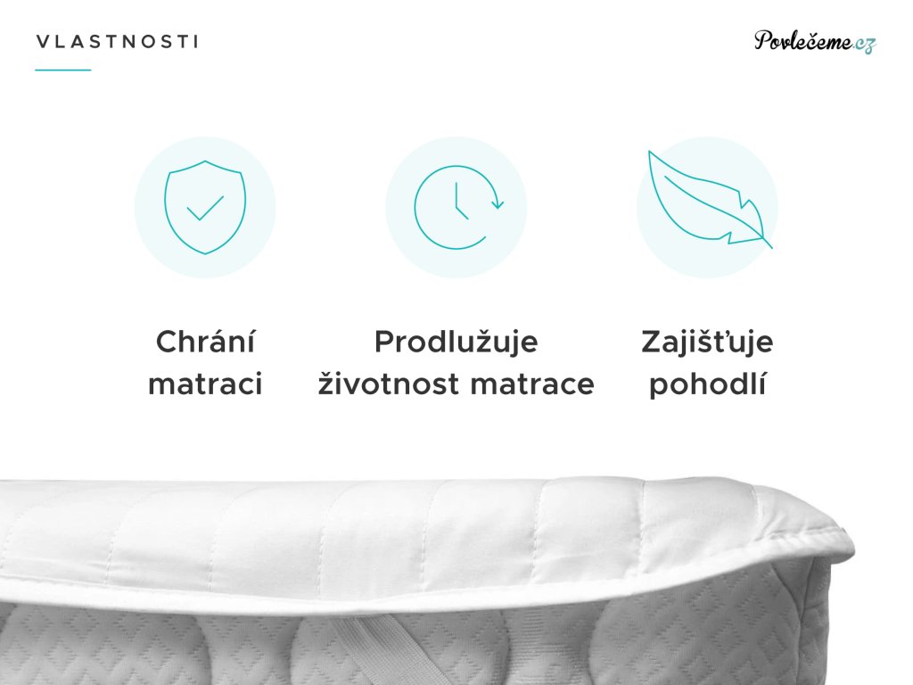 Ochrana matrace je důležitější, než si myslíte. Každý člověk, ať dítě nebo dospělý se přirozeně potí. Během noci vypotíme až litr potu, který se vsákne do prostěradla a jádra matrace. Chránič matrace celkově zvýší hygienu lůžka. Navíc chrání před mechanickým poškozením, znečištěním, roztoči, potem i močí. Jedná se o skvělého pomocníka na dětské postýlky nebo první postele. Své místo má také u dospělých jako běžná ochrana matrace, u seniorů nebo dlouhodobě nemocných, kteří jsou upoutáni na lůžko. Voděodolný chránič vytvoří ochrannou a tekutinám nepropustnou vrstvu. Pocitu spánku na igelitu se bát nemusíte, horní vrstva chrániče je vyrobena z mikrovlákna, které je šetrné k pokožce a příjemné na dotek.