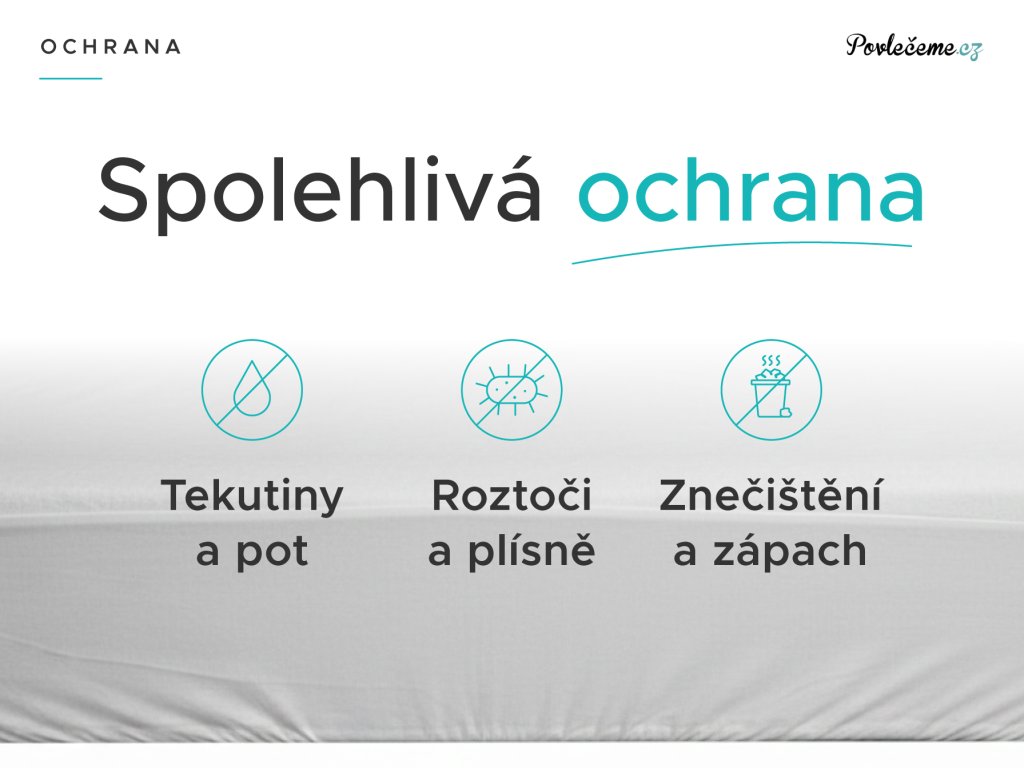 - Chrání před mechanickým poškozením, znečištěním, roztoči, potem i močí