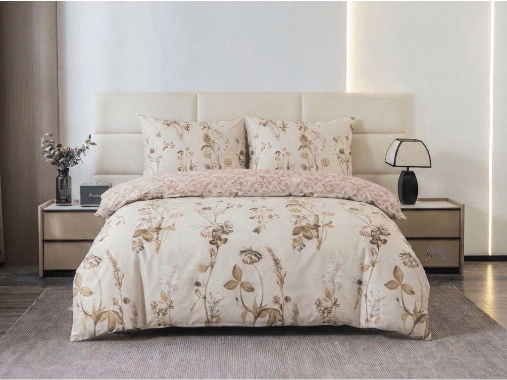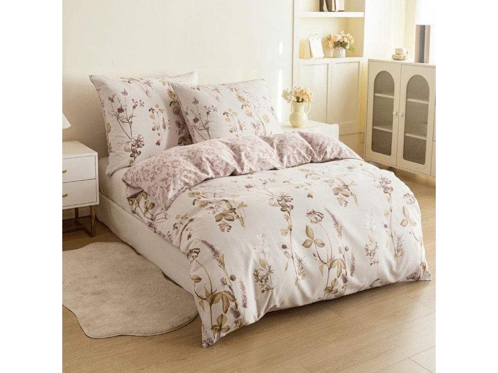 Mikroflanelové povlečení BOTANIQUE krémovo-hnědé
