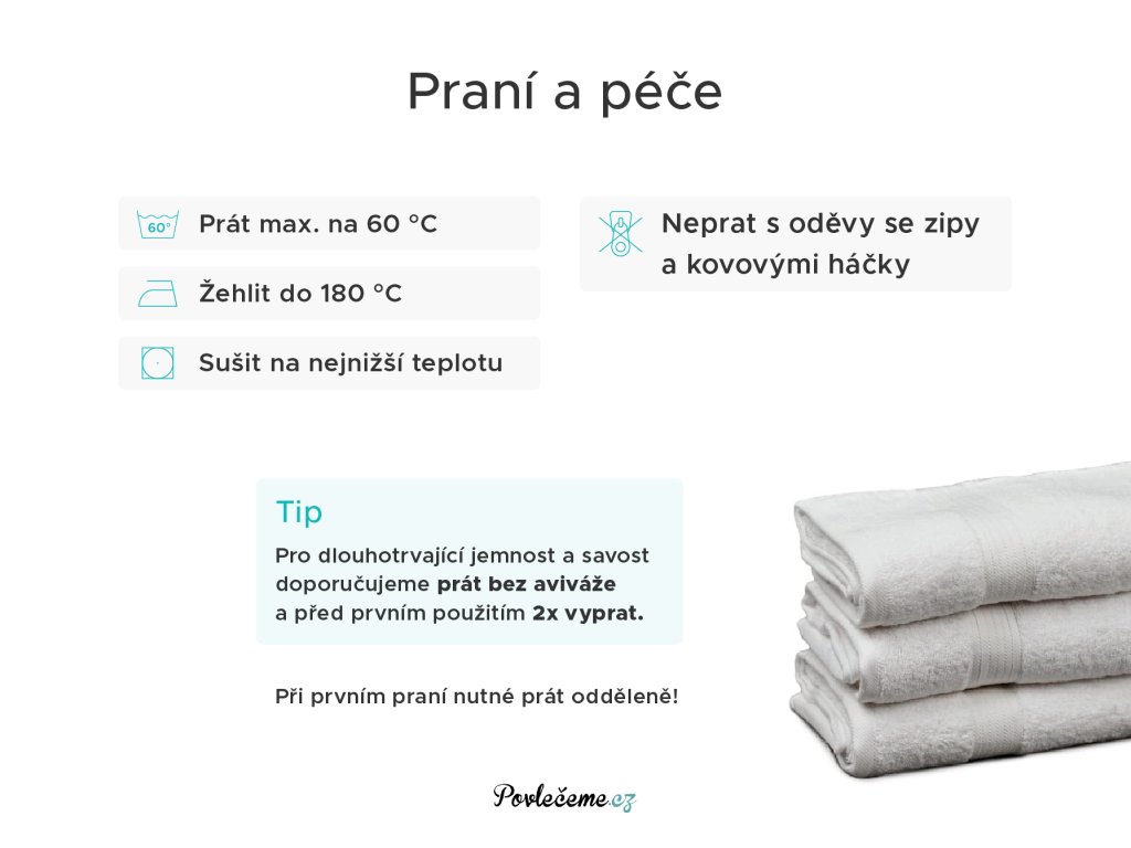 - Pro dlouhotrvající jemnost, hebkost a savost není doporučeno používat aviváž