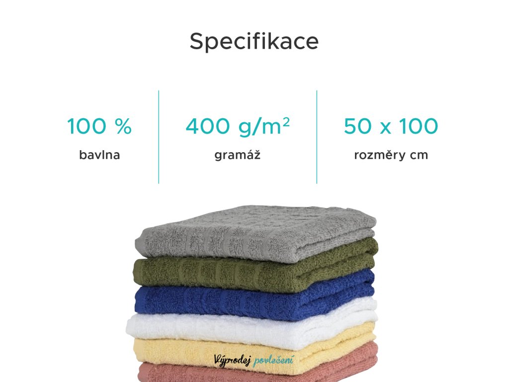 Klasické ručníky o gramáži 400 g/m2 jsou vyrobené z kvalitní bavlny a velice oblíbené u široké populace. Střední gramáž ručníků zajistí všechny požadované vlastnosti v dobré kvalitě. Nižší gramáž se projevuje zejména na síle materiálu, ten je o něco tenčí, ale stále pevný.