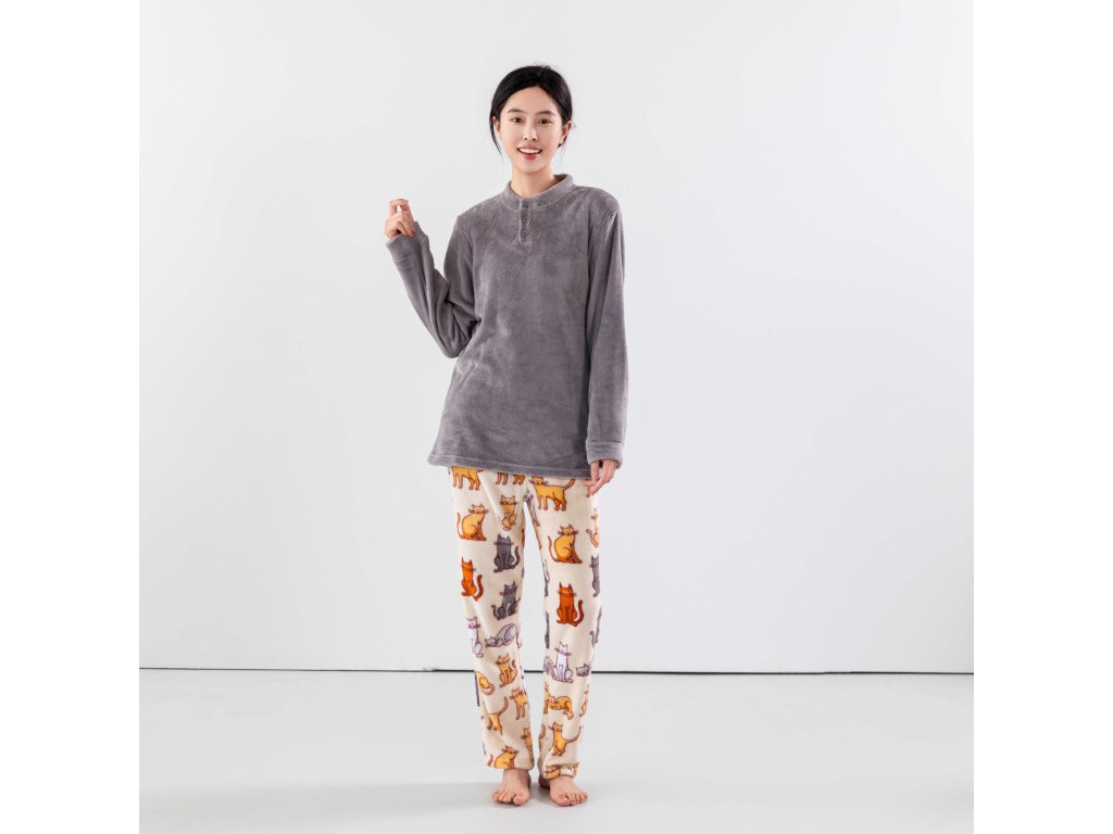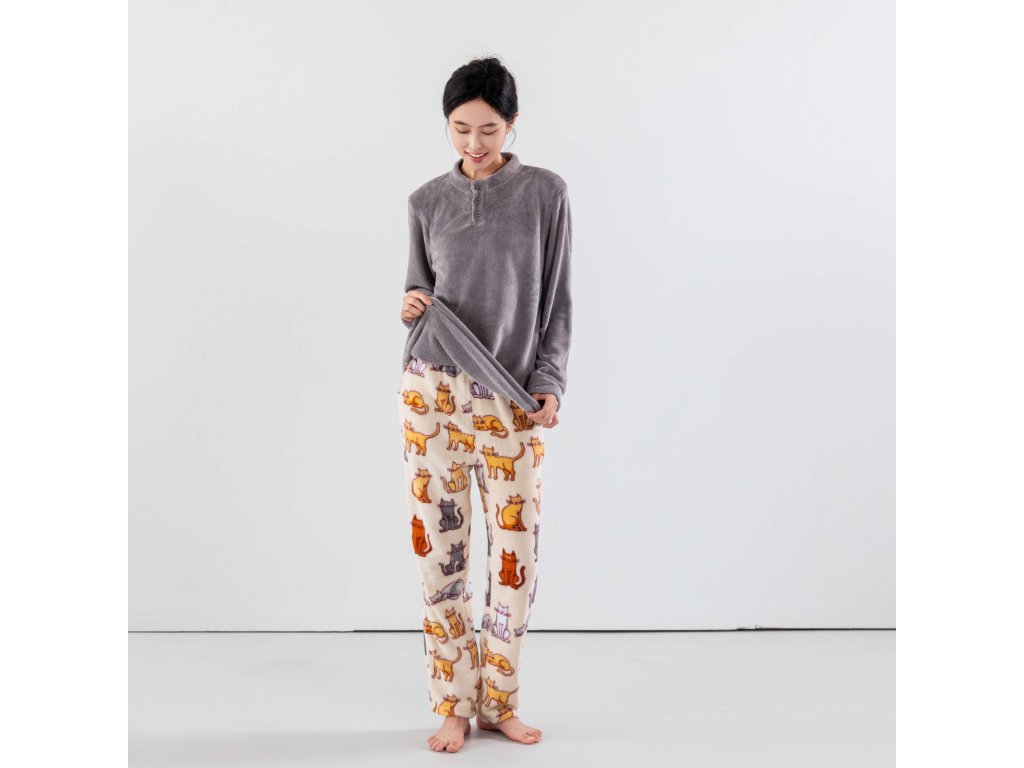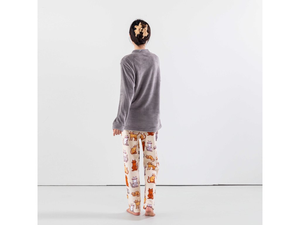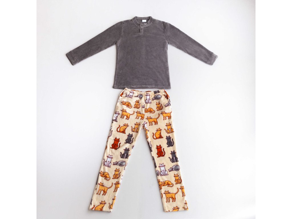 Mikroplyšové pyžamo COLORED CATS krémové - různé velikosti