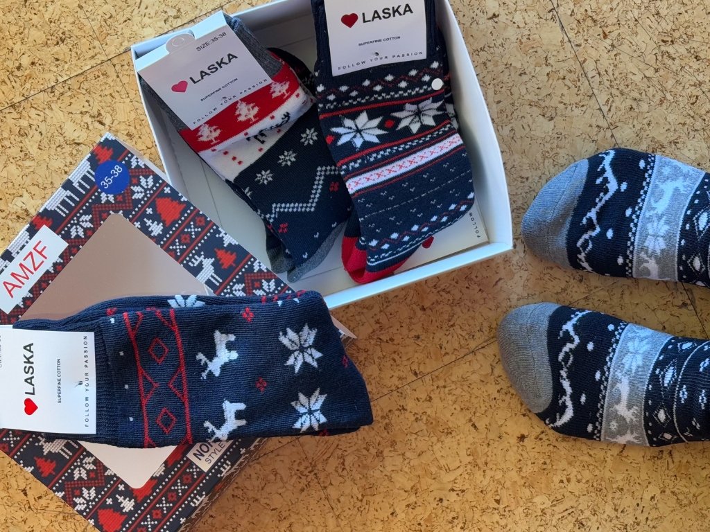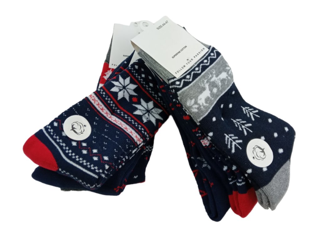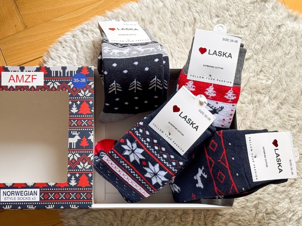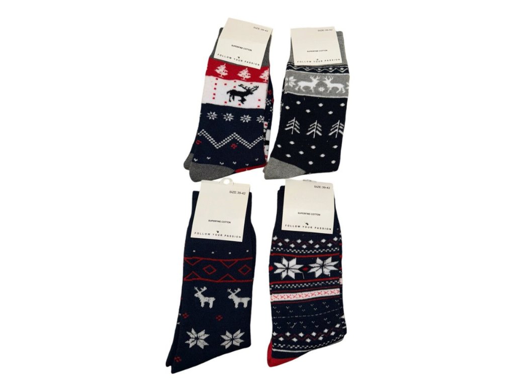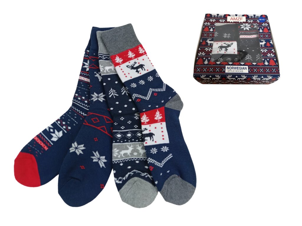 Vánoční ponožky s norským vzorem, dárková sada 4 páry - různé velikosti