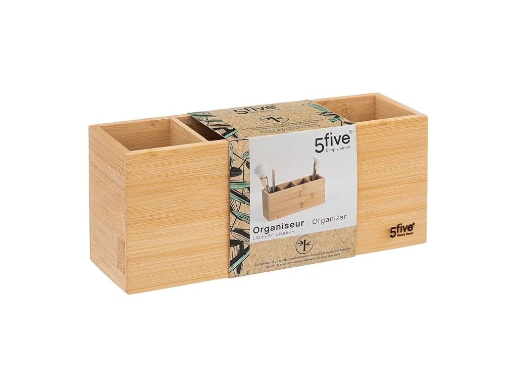 Tento organizér přináší jednoduchost a eleganci do každodenního života. Jeho přírodní bambusový design skvěle doplní jakýkoliv prostor, zatímco praktické přihrádky vám pomohou uspořádat vše od psacích potřeb až po kosmetiku. Udržujte svůj domov uklizený a zároveň stylový – tento organizér je nejen funkční, ale také krásný doplněk vašeho interiéru.