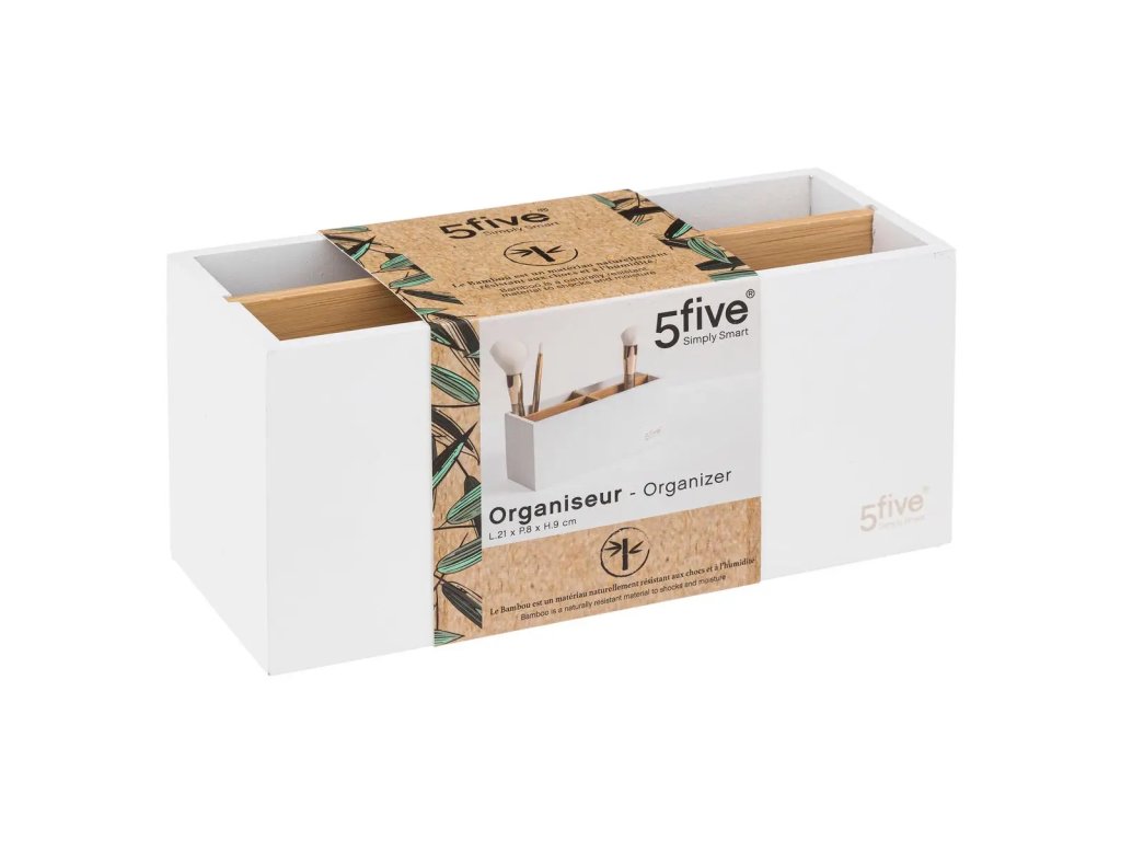 Vneste do svého domova pořádek a harmonii s tímto praktickým organizérem. Díky kombinaci bílého MDF materiálu a přírodního bambusu se hodí do moderních i klasických interiérů. Umožní vám mít všechny drobnosti na svém místě, ať už v koupelně, kuchyni nebo pracovně. Je to ideální pomocník pro každodenní organizaci s důrazem na styl.