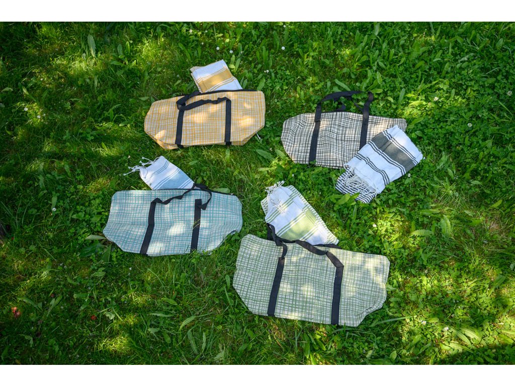 Stylový set plážové tašky + osušky HAMAM 75x150 cm, okrově žlutý, 100% organická bavlna