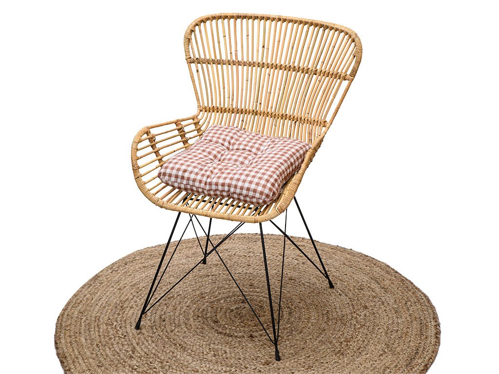 Podsedák jednoduše připevníte k opěradlu židle pomocí provázků. Provázky jsou pevně přišité z jedné strany podsedáku. Provázky zaručí dokonalé upevnění, ale také snadné sundání. Velikost podsedáku vždy přizpůsobte sedacímu rozměru židle.