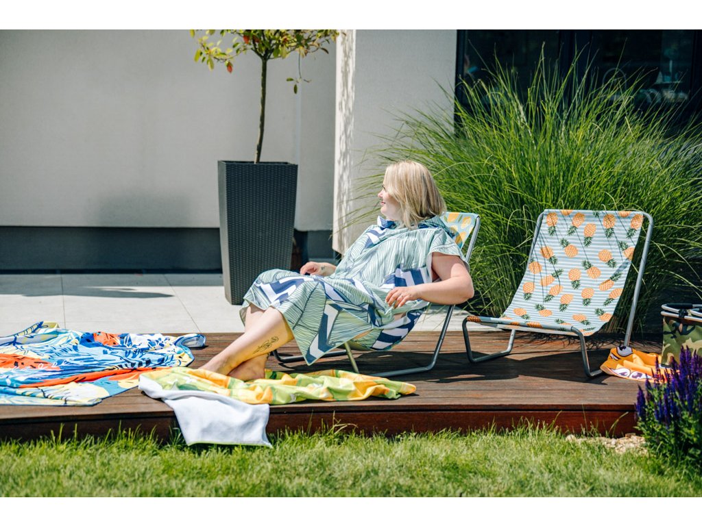 Vstupte do letního dobrodružství s pončem, které spojuje styl, praktičnost a pohodlí. Ať už se chystáte na pláž, k bazénu nebo na dovolenou u moře, tento kousek se stane vaším nenahraditelným parťákem. Díky jemnému mikrovláknu a chytrému střihu s kapucí vás ochrání před sluncem i větrem a zároveň se postará o rychlé osušení. Letní chvíle si zaslouží být bezstarostné – a právě takové vám toto pončo pomůže vytvořit.