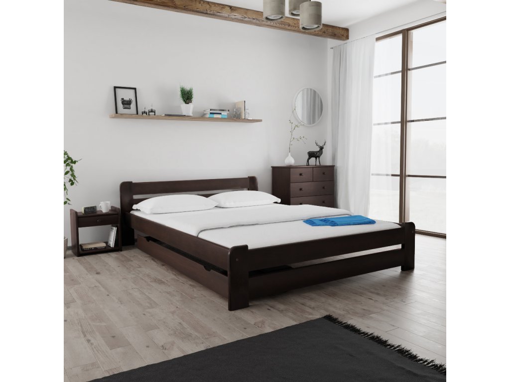 Pro milovníky tmavších odstínů je ideální dekor ořechu. Postele v ořechové barvě připomínají barvu hořké čokolády. V interiéru ložnice působí dominantně a vkusně. Moderně působí kontrast světlého interiéru v krémových nebo bílých odstínech s postelí v přírodní barvě ořechu.