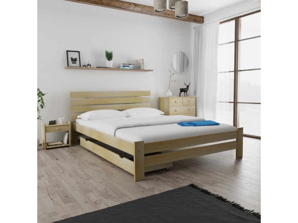 Postel v dekoru borovice prosvětlí vaši ložnici a celý její interiér. Dřevo v barvě borovice nabízí krásný vzhled s výraznou kresbou letokruhů v barvách krémové až načervenalé. Masivní borovice nabízí jednoduchý vzhled, který se hodí do všech ložnic, na chalupy i do penzionů. Neveliké suky vypadají přirozeně a dodávají posteli ten pravý nádech přírody.
