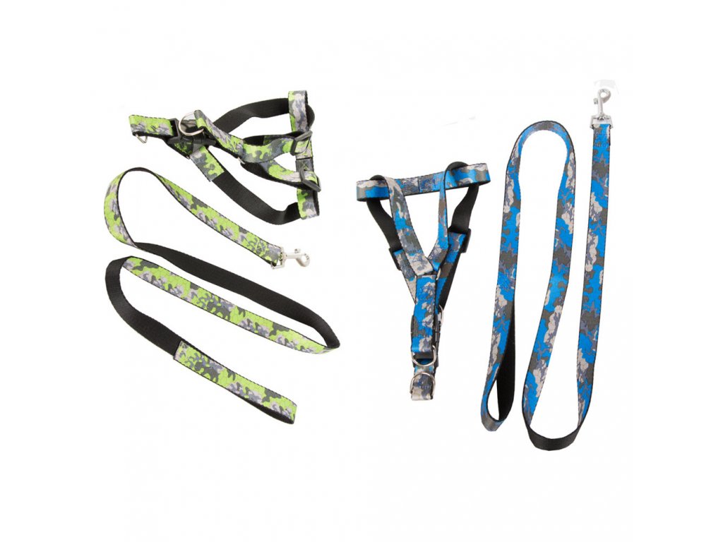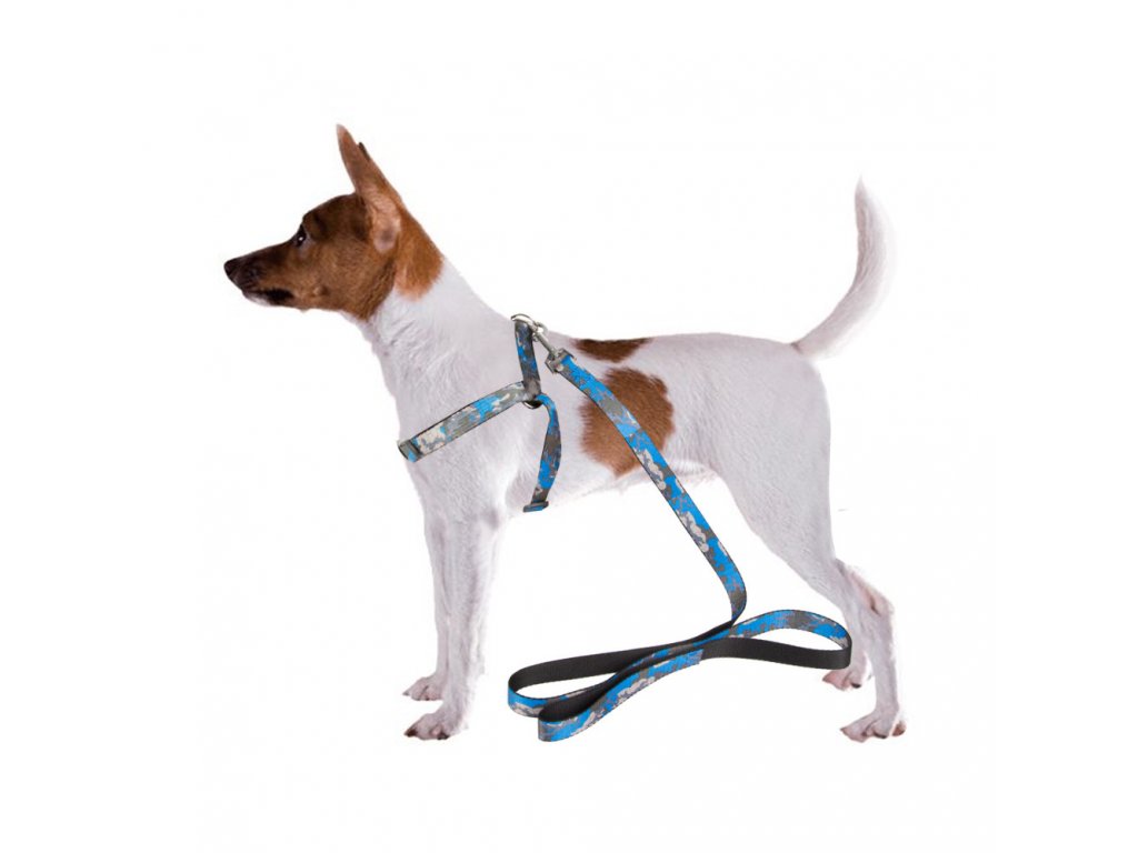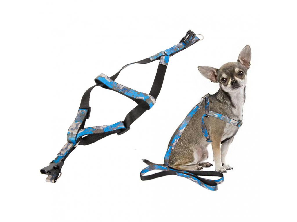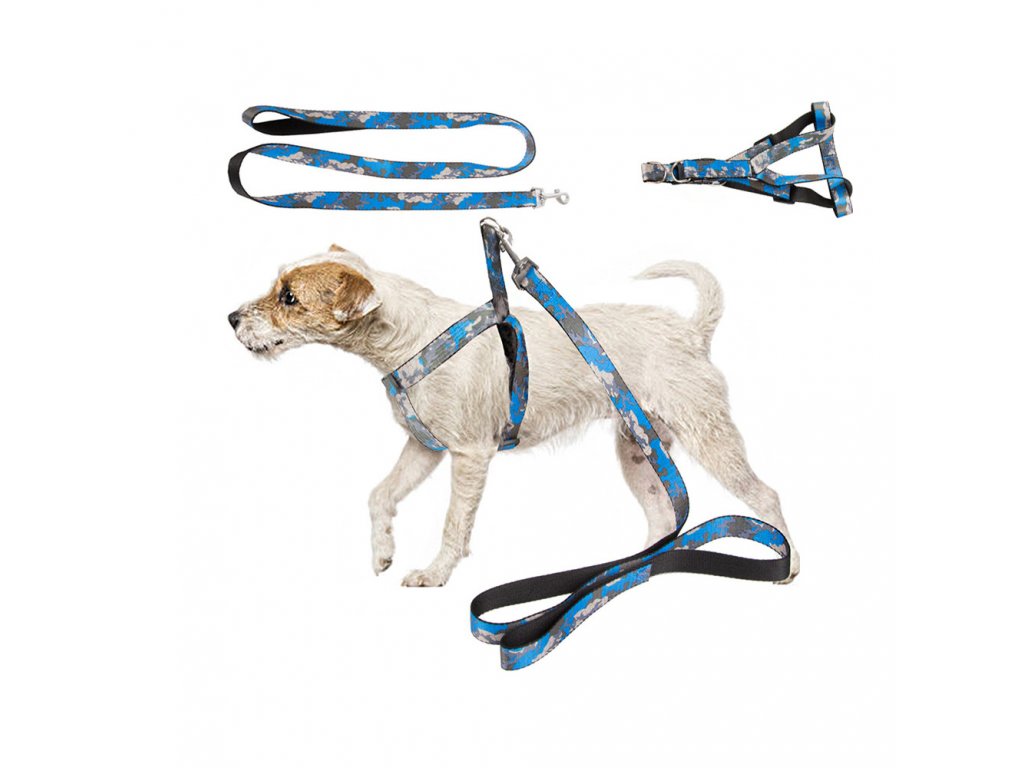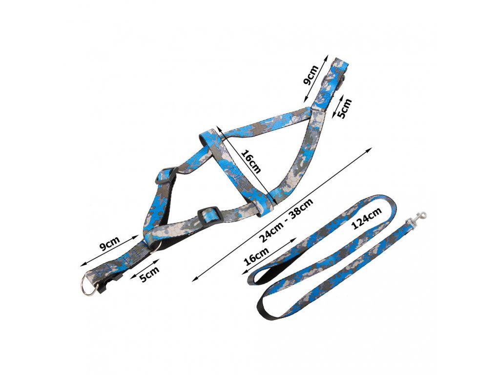 Šedo-modrý postroj s vodítkem pro psa/kočku ELMO