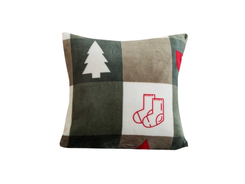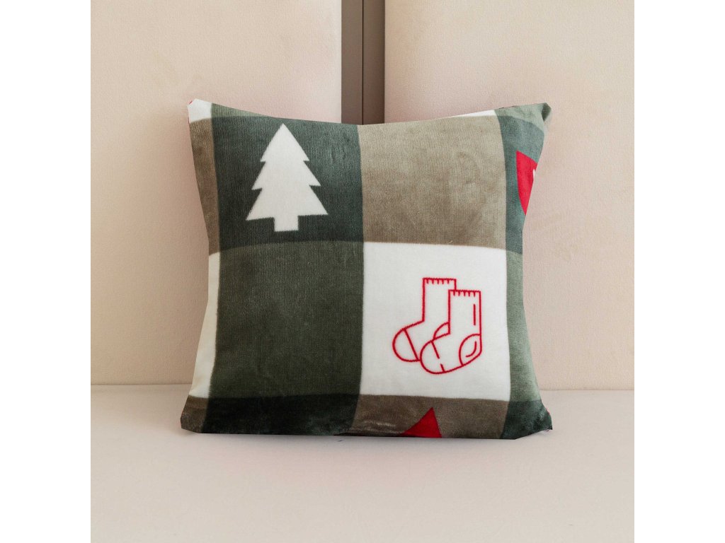 Mikroplyšový povlak na polštářek CHRISTMAS SOCKS 45x45 cm, zelený