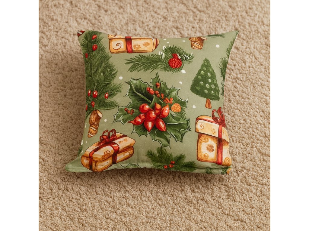 Povlak na polštář z mikrovlákna CHRISTMAS PRESENTS 45x45 cm, zelený