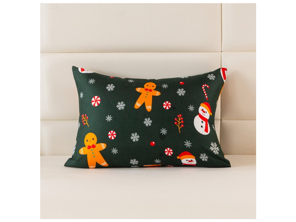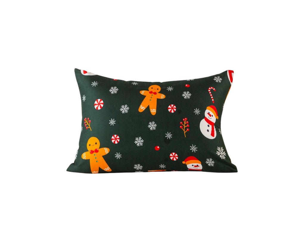 Povlak na polštář z mikrovlákna SNĚHULÁK A PERNÍČEK 70x90 cm, zelený