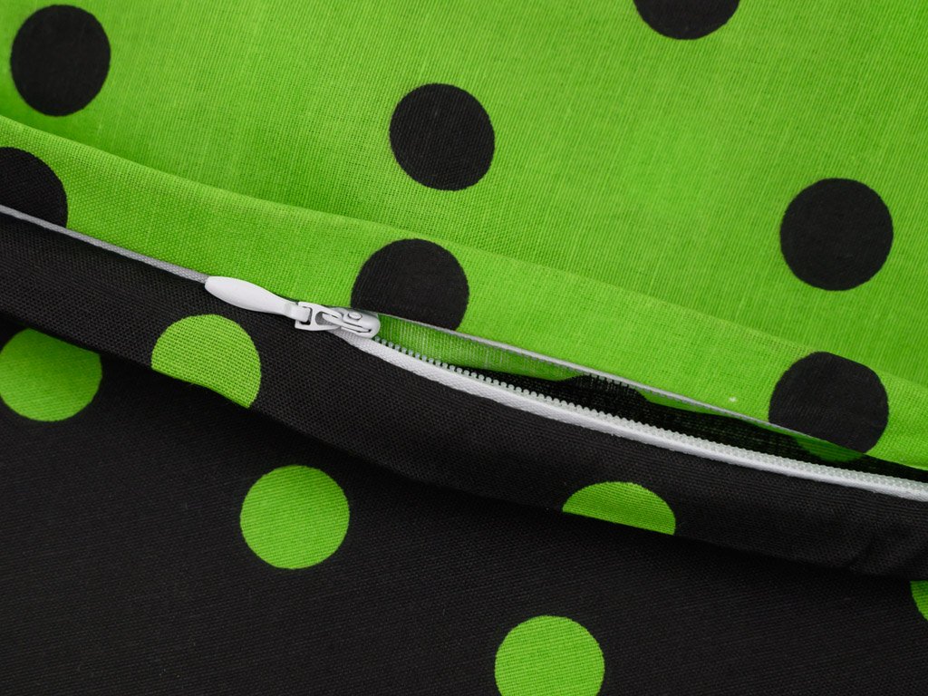 Sada 2 ks dekoračních povlaků na polštář COLAM GREEN o 45 x 45 cm zaujme na první pohled svým hravým vzorem černých puntíků na svěže zeleném podkladu. Tento nápaditý design vnese do interiéru radost a energii. Povlak je vyroben z příjemného bavlněného a odolného materiálu, který dobře drží tvar a snadno se udržuje.