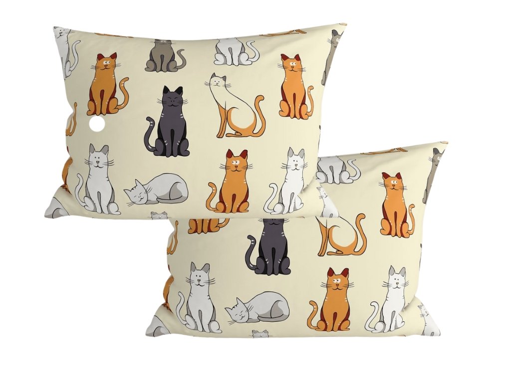 Sada 2 ks dekoračních povlaků na polštář COLORED CATS BLEND 50x70 cm, krémová