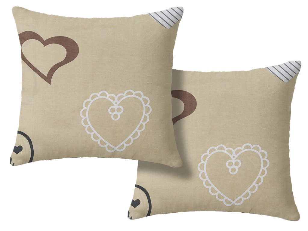 Sada 2 ks dekoračních povlaků na polštář DEAMON 45 x 45 cm v béžové barvě vnese do vašeho interiéru jemnost a harmonii. Decentní vzor s motivem srdcí dodává polštáři romantický nádech, zatímco neutrální barevné provedení zajišťuje jeho snadné sladění s různými styly bydlení. Materiál je příjemný na dotek a zároveň odolný proti opotřebení.